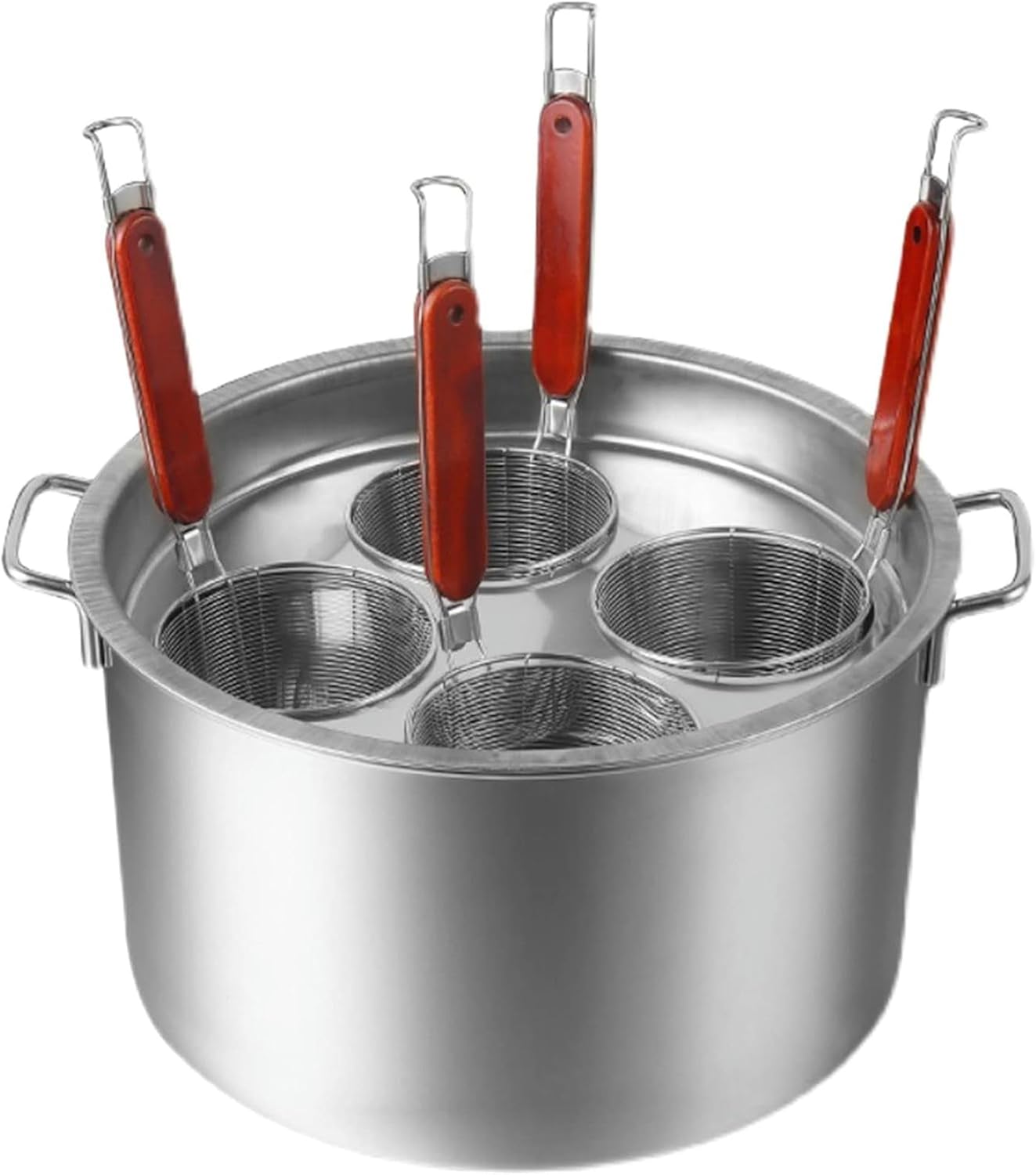 This family-size Pasta Cooker/Steamer Set makes cooking and draining pasta easy. With Inserts strainer basket, dinner has never been easier. Includes a hangable steel lid for healthier, steam cooking.Feature:1. Mirror finish, Classic looks.2. Stainless Steel for Professional Results.3. Aluminum encapsulated base heats quickly and spreads heat evenly.4. Inserts strainer basket, Convenient to use.5. Cool Grip Handles, Dishwasher Safe.6. Ideal kitchen cookware Multipots to use as pasta pot, spaghetti pot, noodle steamer, vegetables steamer, meat steamer pot stainless steel in one set.SpecificationsName: Pasta Cooker Insert SetMaterial: 201 Stainless SteelColor: SilverSize:3 Holes Pasta Cooker Pot Size: 36x21.5cm/14.2x8.5 inches4 Holes Pasta Cooker Pot Size: 41x23.5cm/16.1x9.3 inches5 Holes Pasta Cooker Pot Size: 46x26cm/18.1x10.2 inches6 Holes Pasta Cooker Pot Size: 51x28cm/20x11 inchesInsert Strainer Basket Size: 11x13x34cm/4.3x5.1x13.4 inchesSuitable: Induction Cooktop, Gas, Electric, Ceramic CooktopsPackage List:1 x Pasta Cooker Pot1 x Pasta Pot Stand1 x Pasta Cooker Pot Lid3/4/5/6 x Insert Strainer Basket