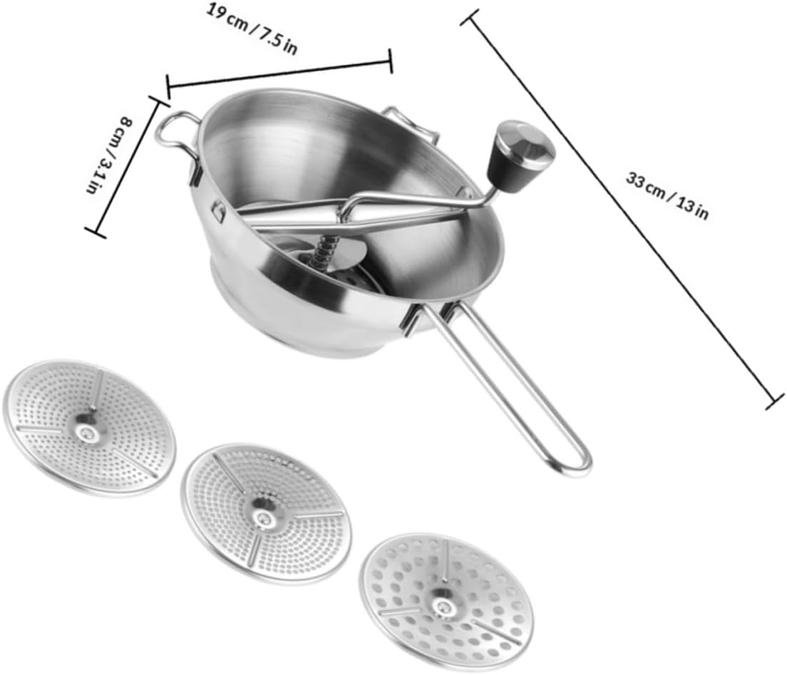 Package List 1 x Set of Potato Ricer Characteristics -Color:Silver -Product Info:Food mixer -Size:33.00X19.00X8.00cm/12.97X7.47X3.14in -Material:Stainless Steel -This potato masher is very easy to clean, evenly curved holes, fine mashing potato ricer stainless. -The Potato Masher can be used to mashed potatoes, sweet potatoes, yams, pumpkins, etc smash potatoes tool. -The workmanship of this product is perfect, and you will have a good experience in using it heavy duty potato masher. -The handle is comfortable to grip, moderate friction and stable operation ricer for mashed potatoes used. -The material is good, and the workmanship is fine, giving you an excellent sense of use.Goods Informationfood masher tool It is very suitable for making pumpkin, carrot, potato and other fruit puree and vegetable puree.mash potatoes crank The handle is comfortable to grip, moderate friction and stable operation.potato masher grinder Mashed potatoes are super easy.potato masher kitchen tool Made of food-grade , safe and healthy.manual potato crusher Made of stainless steel, it is easier to clean than other .manual potato masher You can use it to make truly delicious meals for you and your family