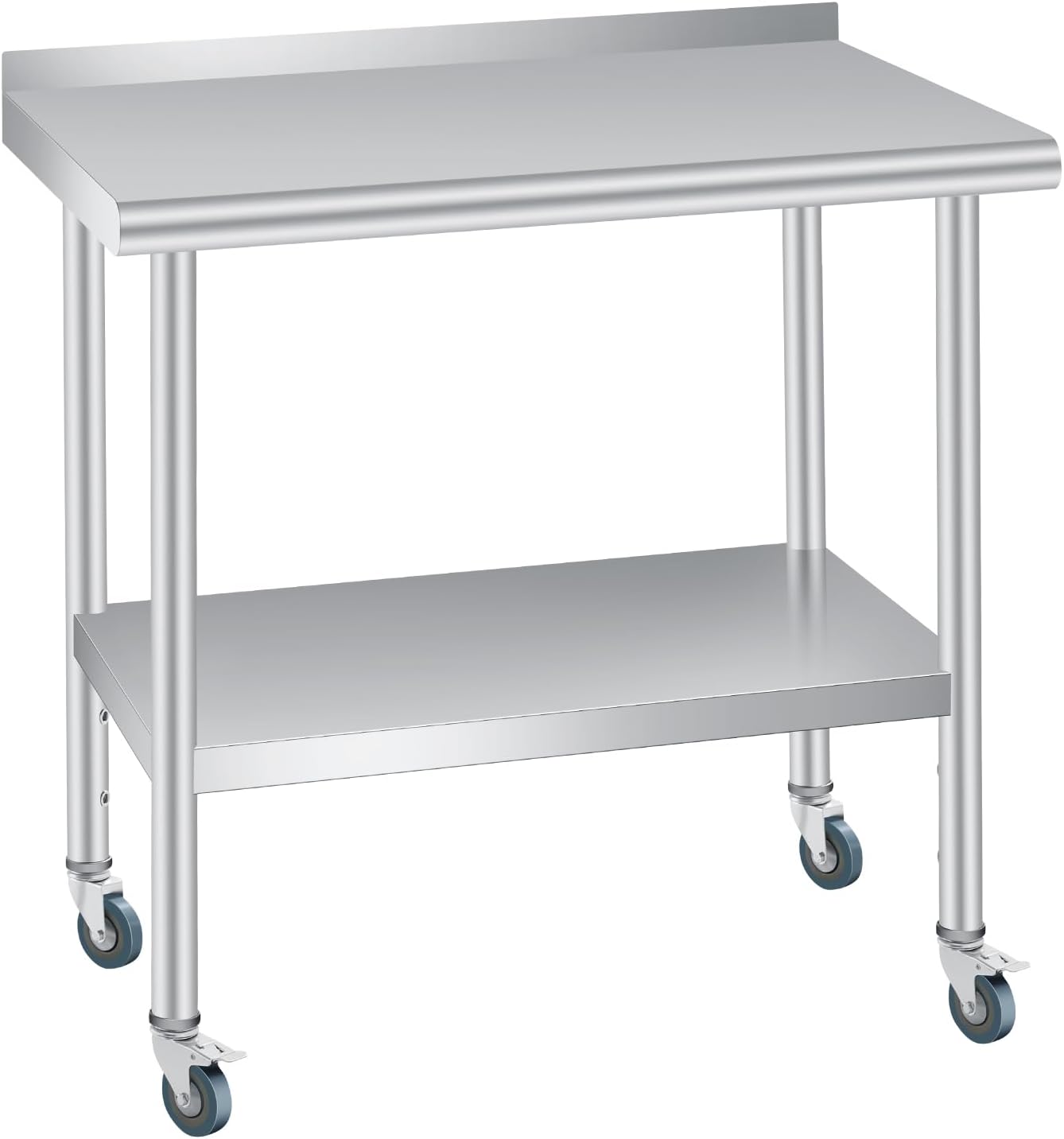 Product Name:Stainless Steel Table for Prep & Work 30 x 24 Inchs With Backsplash and 4 Caster Wheels, Commercial Heavy Duty Table With Adjustable Under Shelf for Commercial Kitchen Restaurant BusinesMain Material: Stainless SteelProduct Dimensions:Assembled Length (in.):32.28Assembled Width (in.):25.98Assembled Height (in.):7.87Weight (lbs.):14
