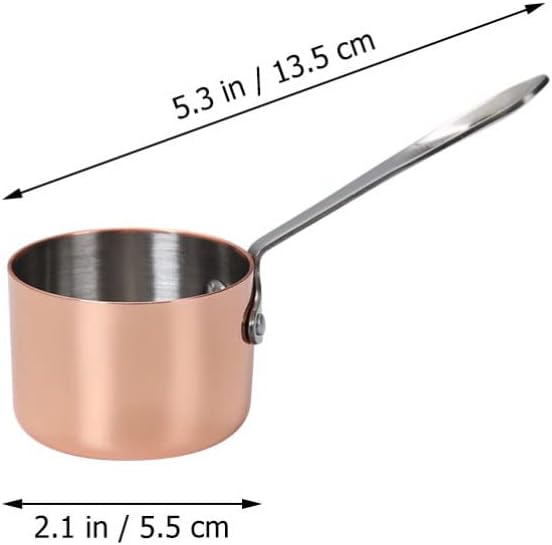 BINGWANGDescriptionStainless Steel Sauce Cups: Milk Baking Cup SaucepaHandle Small Measuring Cup Butter Coffee Soup for KitchenFeatures- Material: Stainless Steel- Note: 1/ 4 Cup- Size: 11.3X4.8CM.- Color: Rose Gold.Package Including1 x Sauce Cup