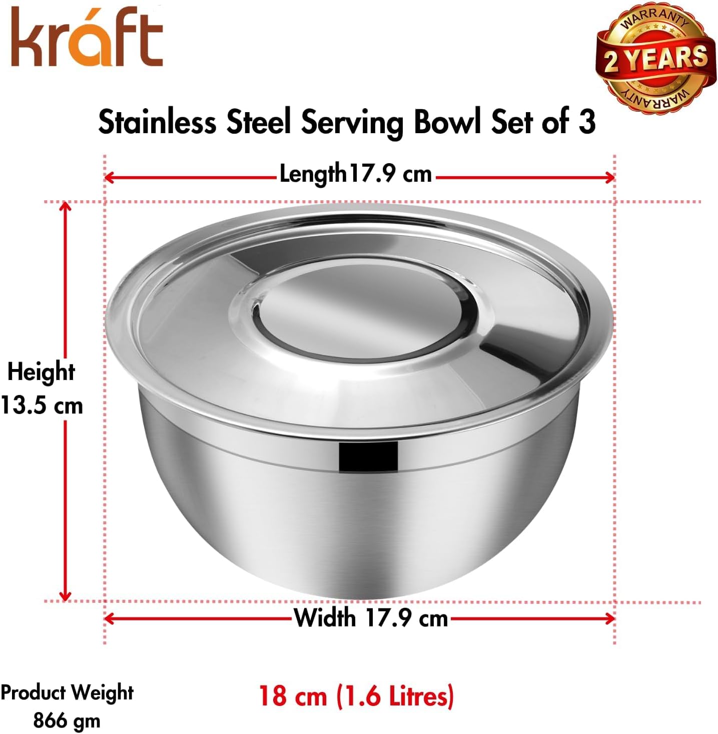 Stainless Steel Serving Bowl Set, featuring three versatile bowls (18cm each) with lids. Crafted from high-quality food-grade stainless steel, these bowls are perfect for serving salads, rice, desserts, and more, making them an essential addition to any kitchen. The matte finish not only adds a touch of elegance to your table setting but also ensures easy cleaning and maintenance. Stainless steel is resistant to rust and stains, guaranteeing long-lasting use. These bowls are lightweight yet durable, making them ideal for everyday use as well as special occasions. Each bowl comes with a secure lid, allowing you to store leftovers or prepare meals in advance without worrying about spills or spoilage. The airtight lids help keep your food fresh, making it easy to transition from kitchen to table and back. These mixing bowls are not just for serving; they are also great for meal prep, mixing ingredients, and tossing salads. Their versatile design means you can use them for various culinary tasks, from baking to entertaining. Additionally, our Stainless Steel Serving Bowl Set comes with a 2-year warranty, giving you peace of mind with your purchase. Upgrade your kitchenware with this stylish and functional bowl set, and enjoy the convenience and versatility it brings to your cooking and serving routines. Whether you’re hosting a dinner party or enjoying a family meal, these bowls are sure to impress!