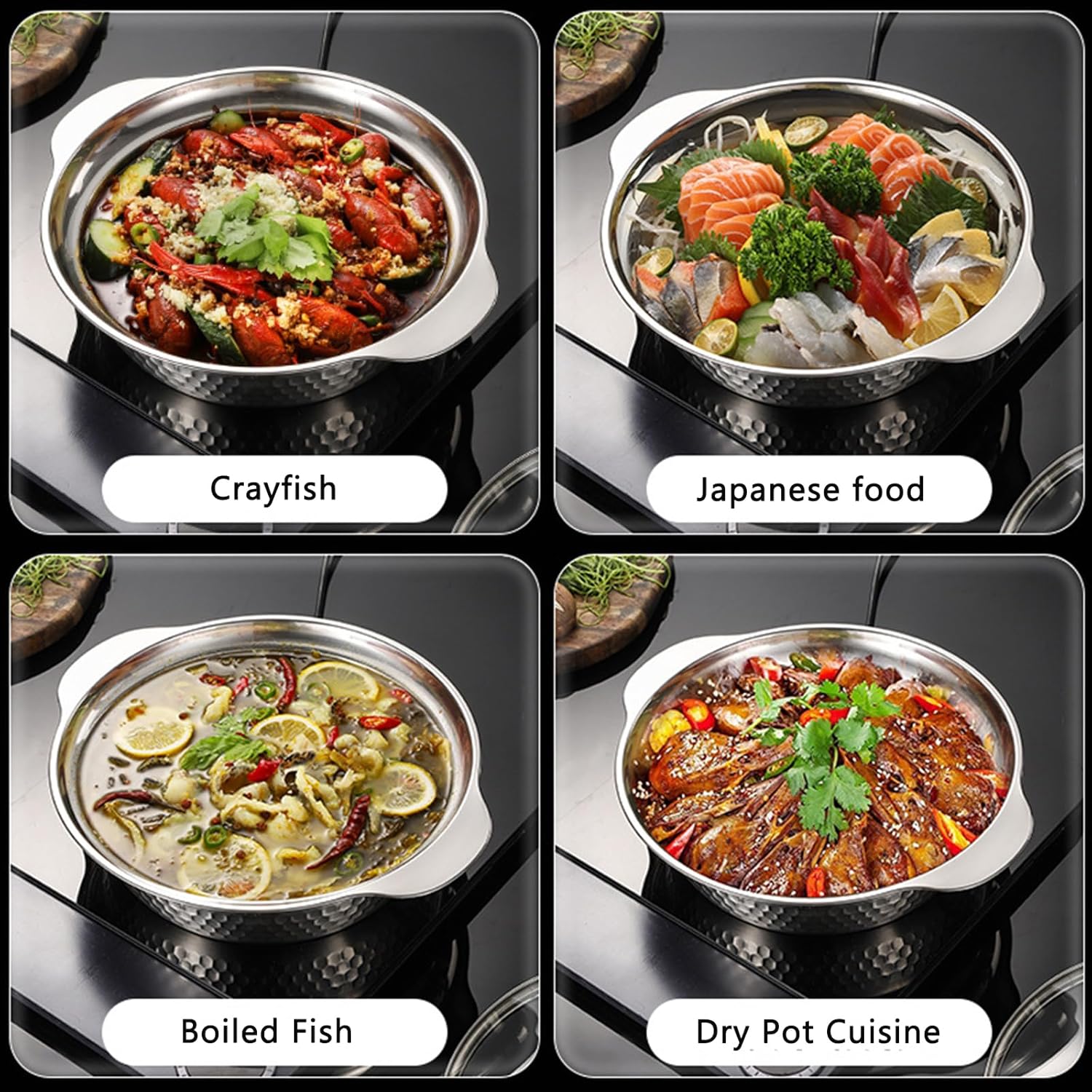Stainless steel paella pan is made of food-grade contact material, hygienic and sterile without rust, safe and healthy. Food tray large calibre design, serving food or crayfish, all give you a comfortable use experience. Double ear design, fit the hand effectively anti-scald, easy to transportion food. Multi-functional storage basin with lid to prevent dust and keep freshness, more hygienic storage. Striped bottom design prevents food from sticking to the pan and easy to clean. Rolled edge design does not hurt your hands. Good heat conductivity, can be used on open flame or induction cooker. Stackable storage saves space and is suitable for all kinds of home environments.2.5L/3L/3.5L/4.5L, 4 capacities to meet your various cooking needs. Product Name:Multi-function Stainless Steel Spanish Paella Pan Material:Thickened stainless steel Craftsmanship:mirror polishing Colour:Silver/Gold Application:Commercial/Home Size: 25cm/27cm/29cm/31cm 25cm: Calibre:25cm/9.84inch; Length with handle:28.5cm/11.22inch; Bottom Diameter:17.5cm/6.88inch; Height: 7cm/2.75inch, Capacities: 2.5L 27cm: Calibre:27cm/10.62inch; Length with handle:31cm/12.2inch; Bottom Diameter:19.5cm/7.67inch; Height: 7.3cm/2.87inch, Capacities: 3L 29cm: Calibre:29cm/11.41inch; Length with handle:33cm/12.99inch; Bottom Diameter:21cm/8.26inch; Height: 7.8cm/3.07inch, Capacities: 3.5L 31cm: Calibre:31cm/12.2inch; Length with handle:35cm/13.77inch; Bottom Diameter:23cm/9.05inch; Height: 8cm/3.14inch, , Capacities: 4.5L Product List. Stainless Steel Spanish Paella Pan x1 Note: Sizes are measured by hand, please allow for slight variations. Any problem, please send me an email, I will deal with it within 24 hours.
