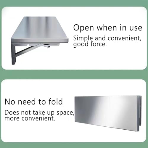 Introducing our Heavy-Duty Wall-Mounted Folding Table, designed with reinforced foldable brackets and sturdy support tubes, ensuring reliable stability for various tasks. You can confidently use this table for your daily activities, knowing it can handle the load. This versatile wall-mounted table serves multiple purposes: a floating desk, kitchen shelf, garage organizer, and much more, making it ideal for JNHWll spaces. Simply unfold it when needed and fold it back to save space, providing a practical solution for your home or office. Crafted from durable stainless steel, this simple yet stylish folding table adds extra surface area and functionality to any room without taking up additional space or clashing with your existing decor. It's perfect for your kitchen, laundry room, or workspace, offering a sleek and modern touch. Installation is straightforward on brick or concrete walls, ensuring that you can enjoy your new table quickly. Product Name: Heavy-Duty Stainless Steel Wall-Mounted Folding Table, Storage Shelf, Dining Table Support, Kitchen Use, Single-Layer Folding Table Material: Stainless Steel Style: Simple and Modern Additional Features: Foldable Weight Capacity: 165 lbs / 75 kg Occasions: Office, Kitchen, Dining Room, Laundry Room, Bar, Apartment, Bedroom, Studio, etc. Package Includes: 1 x Wall-Mounted Folding Table (includes tripod support and expansion screws) Please Note: 1. Allow for a slight measurement error of 1-2 cm due to manual measurement. 2. The actual product may vary slightly from the images shown due to screen differences. 3. For any inquiries, please feel free to contact us, and we will respond promptly. Thank you for visiting!