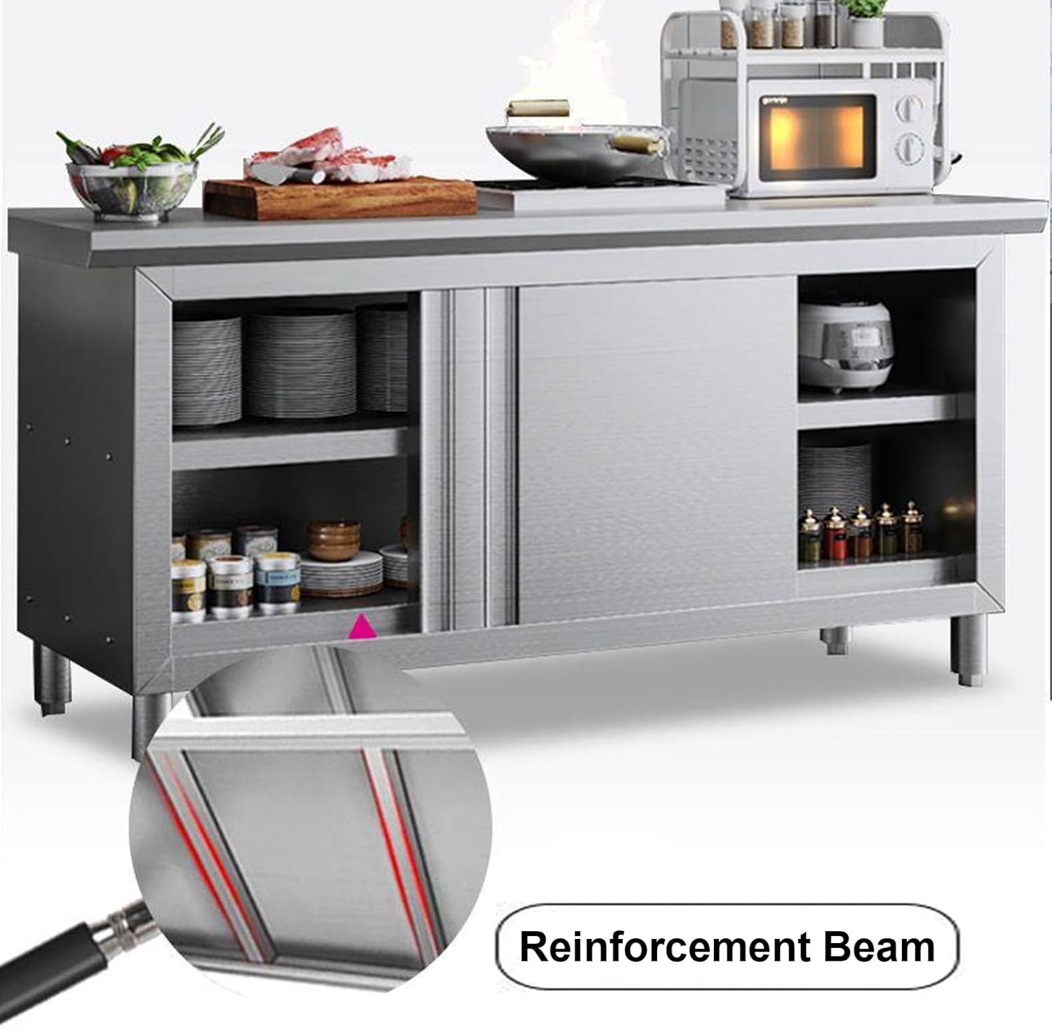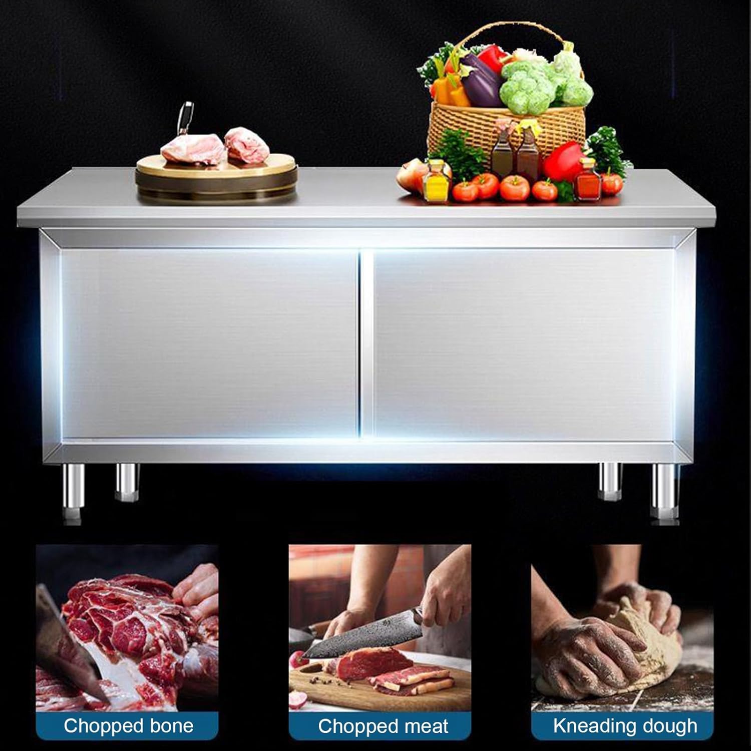 Adjustable feet for balance and versatility The stainless steel kitchen workbench is smooth and bright, rust-free, sturdy and stable without shaking, and can be used for a long time Product name: Multifunctional workbench Material: Stainless steel Size: 80x40x80 cm (31.5x15.7x31.5") 80x50x80 cm (31.5x19.7x31.5") 80x60x80 cm (31.5x23.6x31.5") 100x40x80 cm (39.4x15.7x31.5") 100x50x80 cm (39.4x19.7x31.5") 100x60x80cm (39.4x23.6x31.5") Product List: Workbench x1 (other items not included) Note Tips: The product is manually measured, there may be an error of 1-3 cm, please understand Due to different shooting angles and monitors, the picture may have a little color difference, please understand