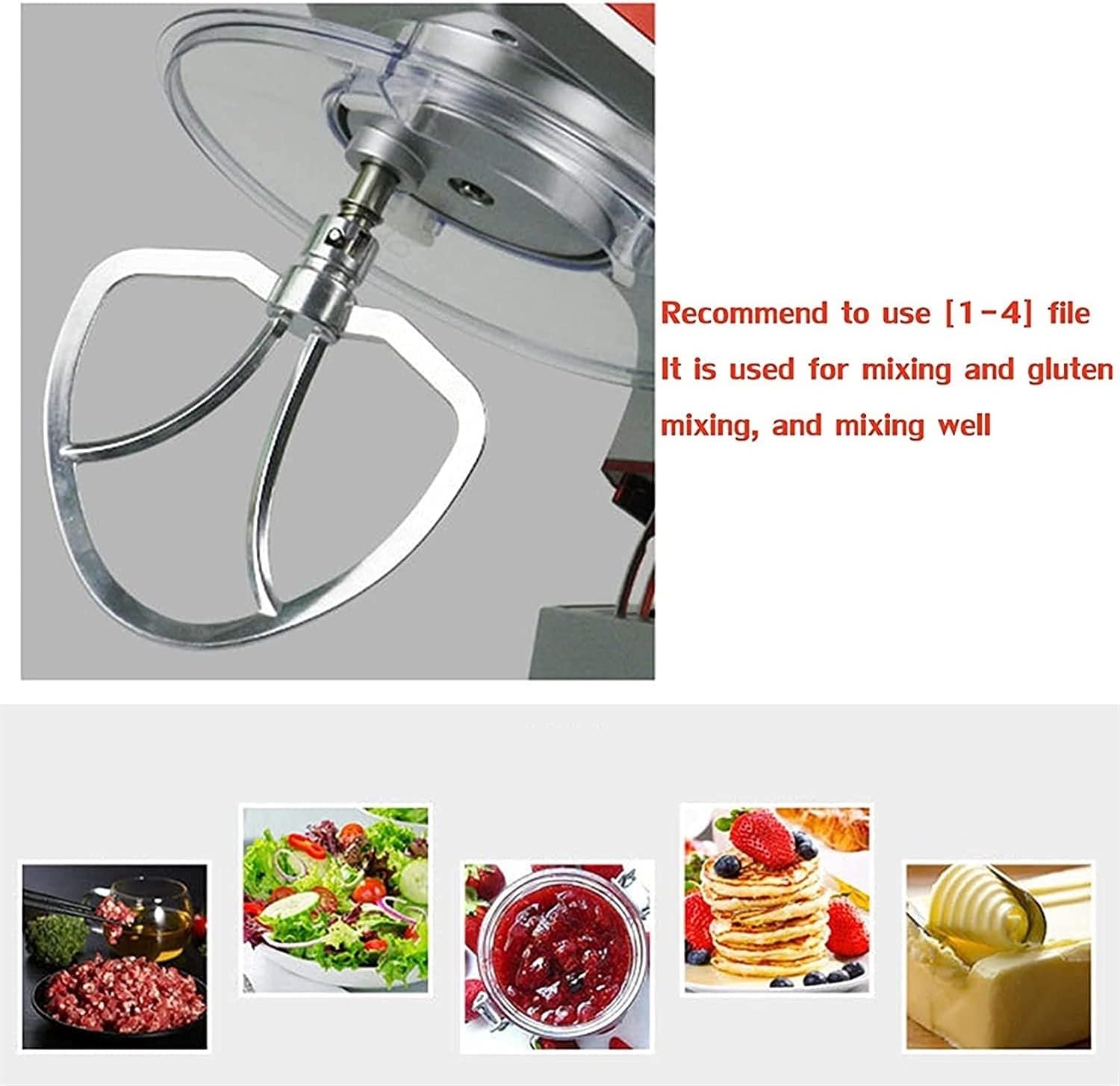 Various kinds of pasta: such as bread, steamed buns, buns, dumpling wrappers, and other doughs for mixing various foods and spices. Standard machine + stainless steel dough hook: a total of four heads (including: egg beater + dough hook + mixing knife + stainless steel dough hook) Rated power: 1500W Basin capacity: 7L If you have any questions, please contact us in time and we will respond to your inquiry within 24 hours.
