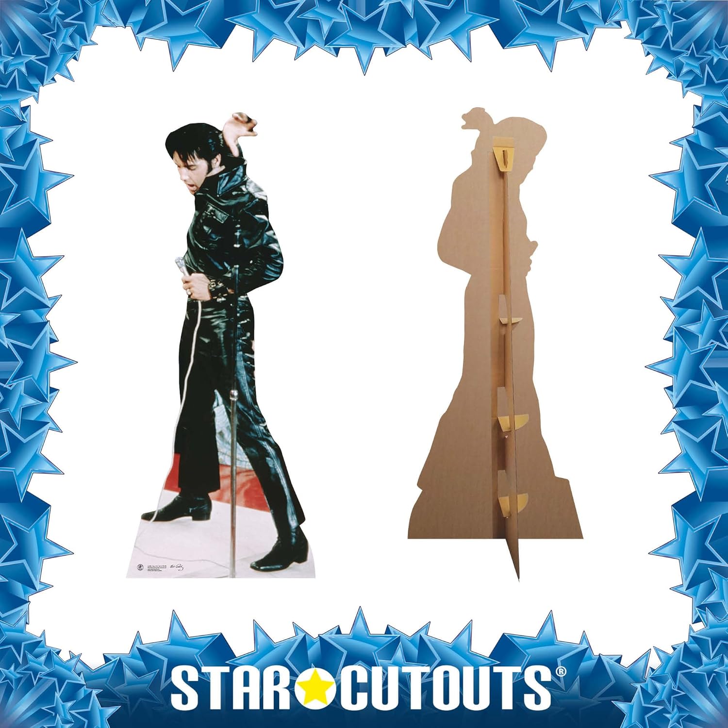 In 1968 Elvis Presley preformed an amazing comeback special enabling fans to fall in love with him all over again. Now you can relive the moment you fell in love with Elvis with this incredible cut out. At 184cm tall you will believe Elvis is in the room performing just for you. Official Star Cutouts Elvis full size lifesize cut outs. Feel as if you are in the room with Elvis Presley the King of Rock n Roll. All these cutouts are approved by Elvis Presley Enterprises and images are genuine all taken at exciting moments during Elvis’ career. Everybody has a favourite Elvis image and now you can relive the joy of the first time you saw Elvis and create an amazing buzz of excitement. Imagine the smile on the face of the fan who finally gets to meet their hero. Discover an easy way to enliven parties and to create a star studded soiree. Take photos of family and friends as they pose with their favourite character or celebrity star. Guests of all ages will instantly recognise your special guests due to our incredible high definition and intricate printing technology. Enjoy the moment as fans heads turn twice as they are so pleased to see how real and impressive their Star Cutout looks. Star Cutouts manufacture all our products in house using state of the art laser cutting technology to ensure you receive the best top quality cutouts. Each standee is supported by a cardboard easel, making it free-standing and easy to set up. Look amazing in the home, office and are sure to be the icing on the cake at any event