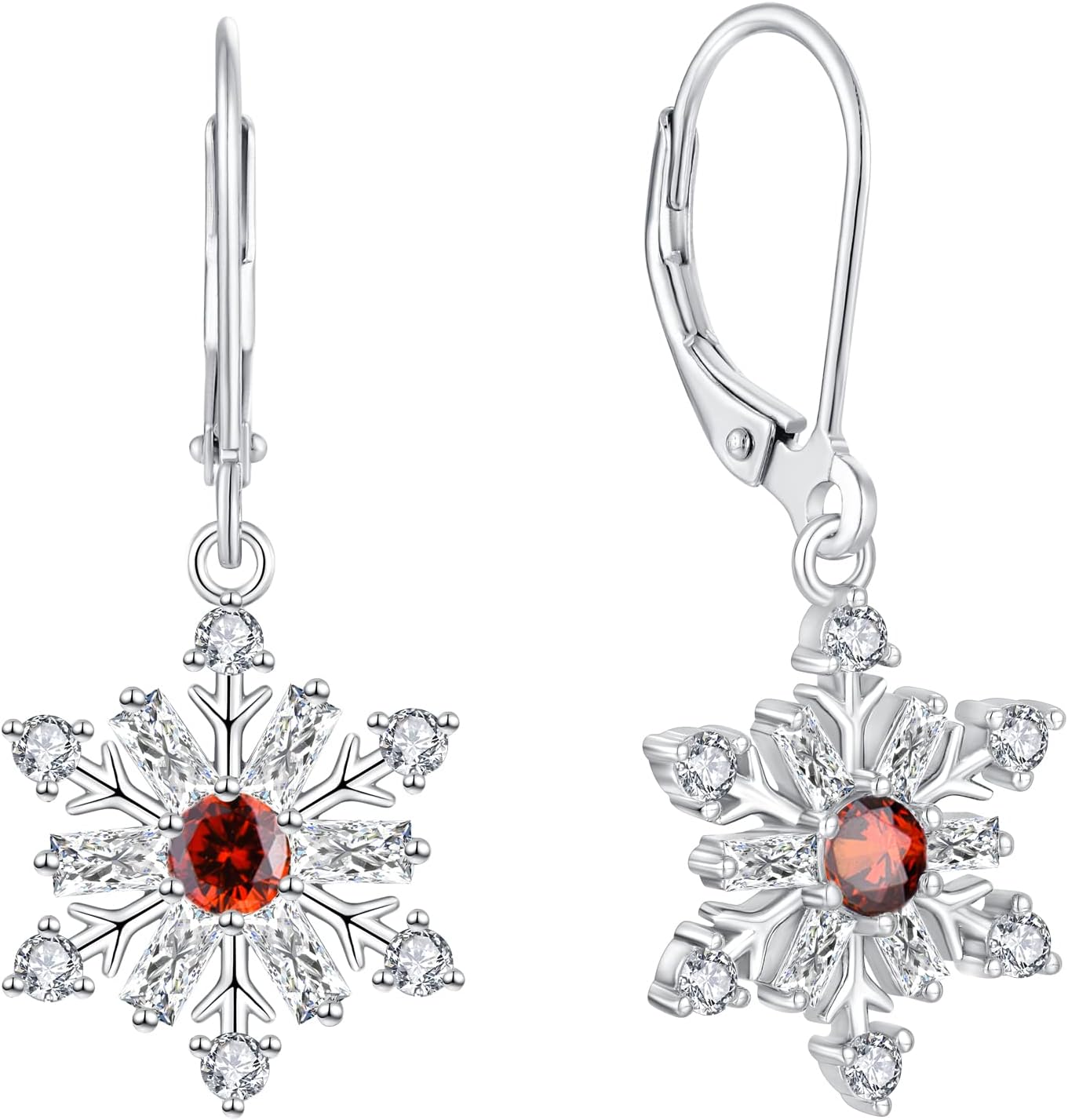 Starchenie Snowflake Dangle Drop Earrings 925 Sterling Silver Leverback Earring Birthstone Gemstones Jewelry Gift for Women