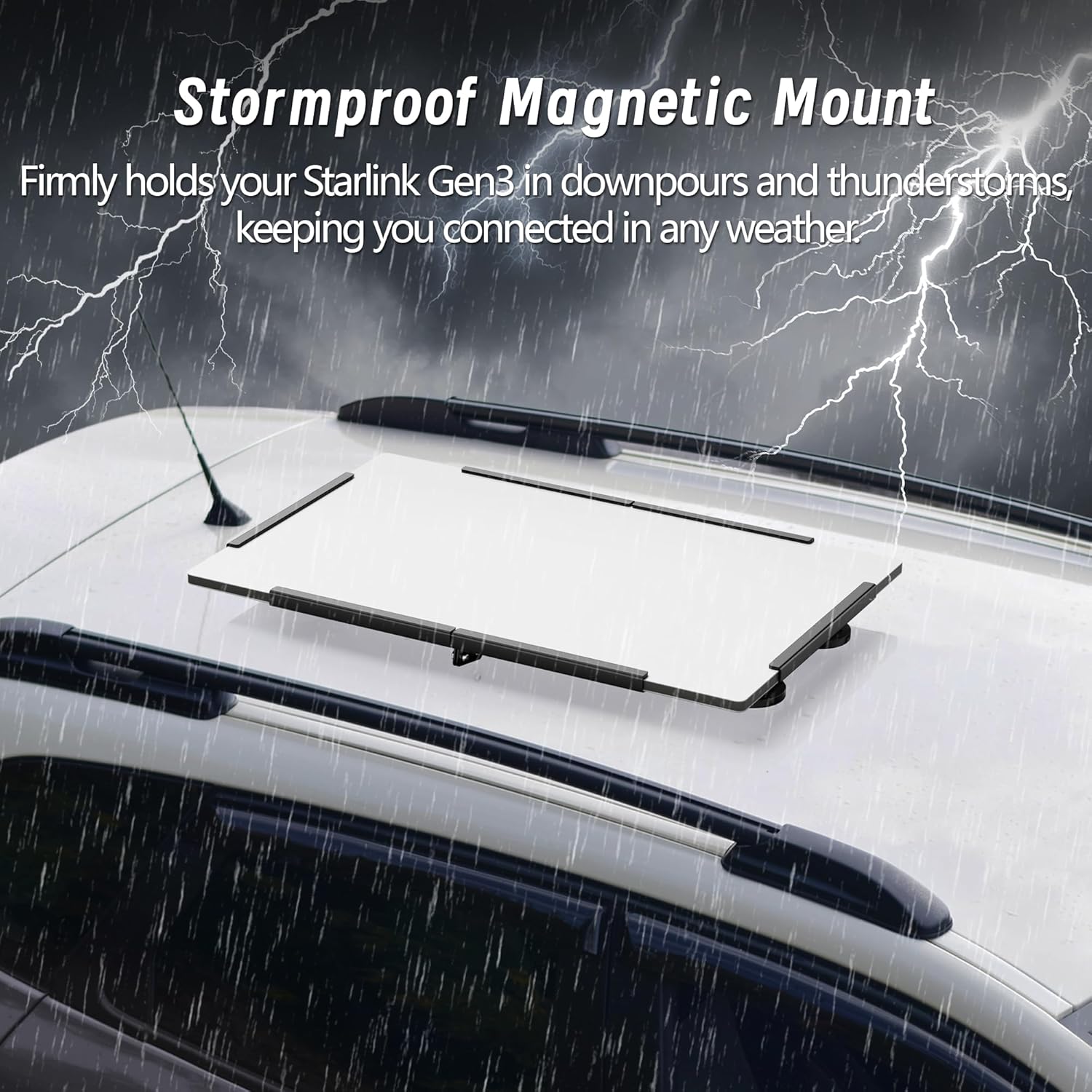 Take your Starlink Gen 3 dish wherever life takes you. Our Magnetic Roof Mount Kit makes it painless to go from driveway to desert campsite in under two minutes—no power tools, no glue, no worries. The patented rare-earth magnets generate a combined pull of 176 lb, so your dish stays planted whether you’re cruising the freeway or parked in a windy pass. Constructed from powder-coated Iron and lined with neoprene, this mount withstands rain, sun and salt spray—without scratching your roof. When you’re done streaming, fold it flat, zip it into the carry bag, and head home. It’s the easiest, most reliable way to keep your Gen 3 satellite working on the road.