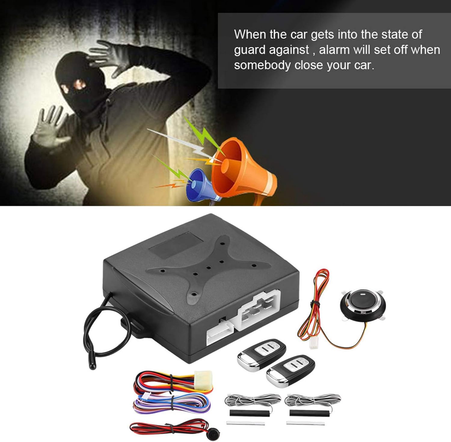 Description: This product is suitable for 12V automobile refitting use, circuit design using microchip chip, adopt dual-core independent processing circuit (PKE anti-theft chip and startup chip are separated independently) stable performance, strong anti-interference ability! The remote control PKE induction chip uses the Austrian chip A 933 used in the original vehicle, which has high sensitivity and stability. It's an ideal choice for low and high car allocation. Specification: Material: ABS Plastic Color: as picture shown Operating Voltage: DC12V Main Function: 1. Push button start/stop 2. Remote engine start/stop 3. Intelligent hand brake detection 4. Intelligent oil pump start detection 5. Remote trunk release (Extra trunk release solenoid kit may be required.) 6. Remote car finding (horn howling tips) 7. PKE keyless entry function, automatically unlock when close to the car 1.5-3 meters and lock the door when away from the car 3-5 meters. 8. PKE induction temporary power off 9. RFID identity recognition 10. Anti-theft alarm function (foot brake alarm prompt) 11. Anti-theft engine lock function (After locking the door, the car can not start inside) 12. After starting, step on the foot brake to lock the door automatically and unlock when power off. 13. Alarm reminder of original car horn (alarm horn can be added) 14. Power off memory 15. Emergency reset function 16. Remote start 10 minutes timing power off Package list: 1 * Alarm Unit 2 * Key Fob 1 * Push Start Button 2 * Wiring Harness 3 * Vibration Sensor with Wiring Harness 1 * Manual 1 * Double Sided Adhesive Tape