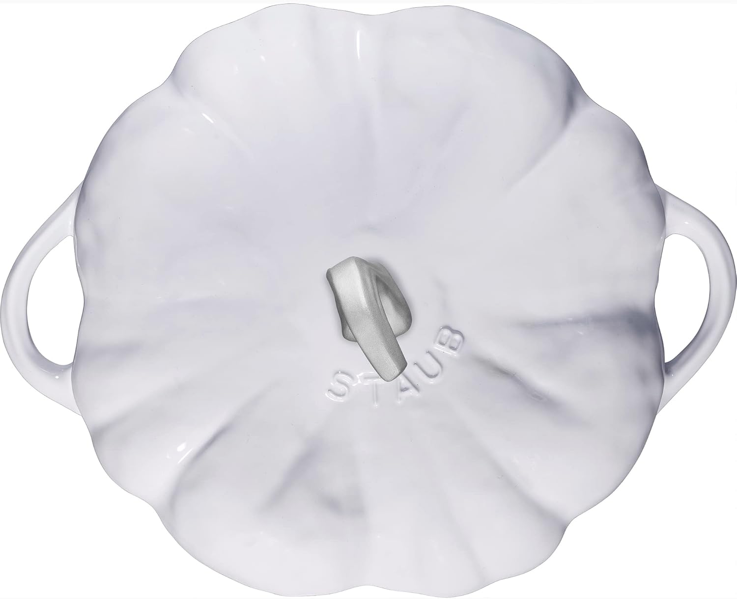 The Staub Cast Iron Pumpkin Cocotte was designed not only for collectors, but for those that would like to bring a little whimsey to their table. This Cocotte is more than mere decoration. It is an heirloom quality Dutch Oven, cast and enameled in France by skilled craftsmen. The interior enamel is Staub's proprietary textured matte finish that promotes browning.The Staub cocotte is unsurpassed for slow-cooking meats and vegetables to tender perfection, and for simmering hearty stews and soups. Cast iron possesses exceptional heat-retaining qualities, so the pot heats evenly throughout. This pot also makes a handsome serving vessel at the table.