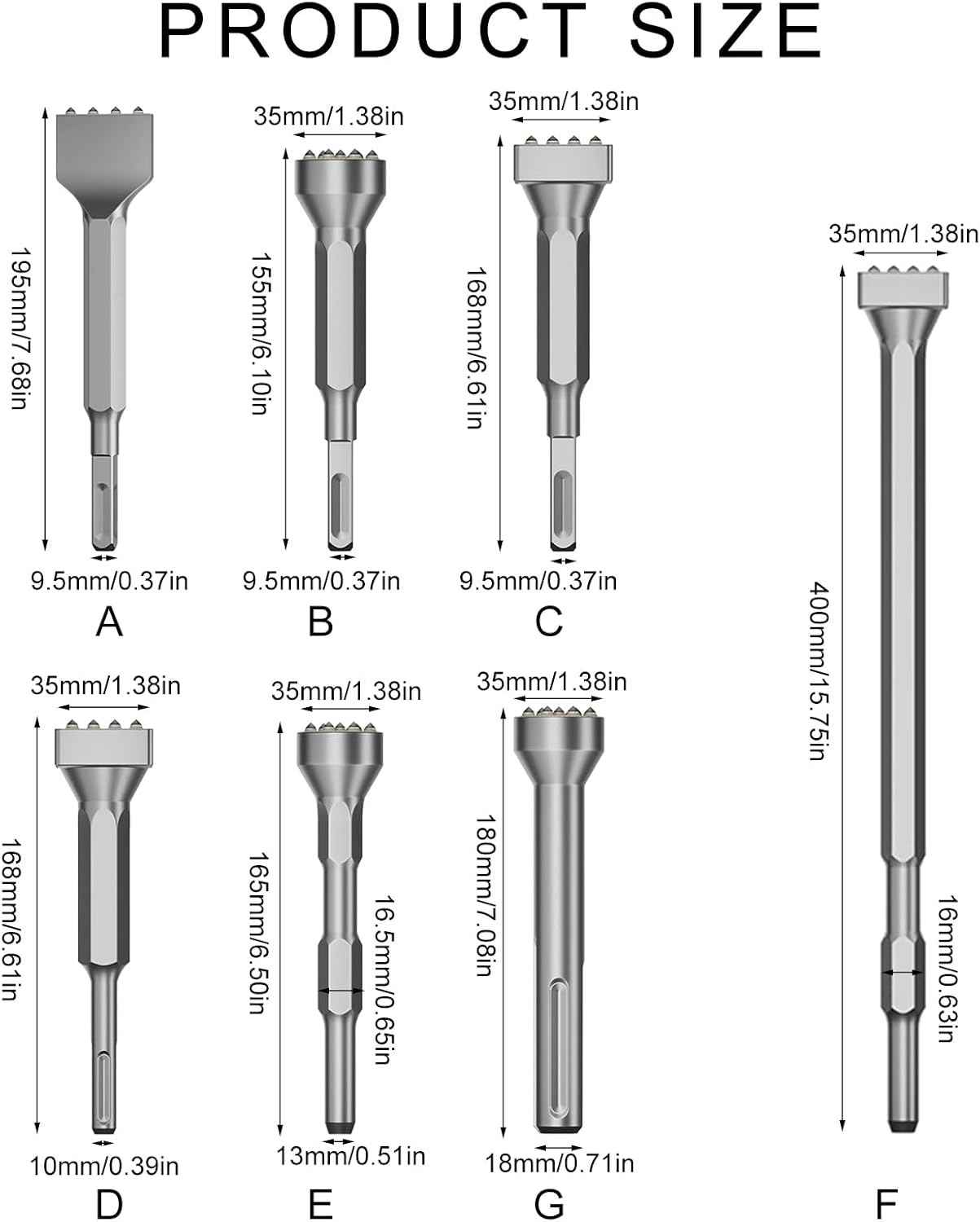 Steel Demolition Chisels High Performances Steel Hammer Drill Chisels Multiple Styles Suitable For Electric JackhammersFeatures:unparalleled durability and efficiency with our Electric Hammer Chisels Head, crafted from alloy steel for long lasting Performances in demanding tasks.This Chisels head features a Robusts designs that ensures Precisions and strength, making it essential tool for heavy duty drilling and chiseling projects.Suitable for professional contractors, enthusiasts, and construction workers who require Stable and powerful tool to Completes their projects efficiently.Perfectly suited for use in construction site , home renovations, and industrial applications where precise chiseling and drilling are required.Enhances your toolkit with this Multifunction and Chisels head, ensuring you have the right equipment for any challenging task at hand.Specifications:Component : metal Styles: multiple for optionPackage Includes:1xElectric Hammer ChiselsNote:Please allow 1 to 3cm error due to manual measurement, please make sure you do not mind before you bid,Due to the difference between different monitors, the picture may not reflect the actual color of the item.