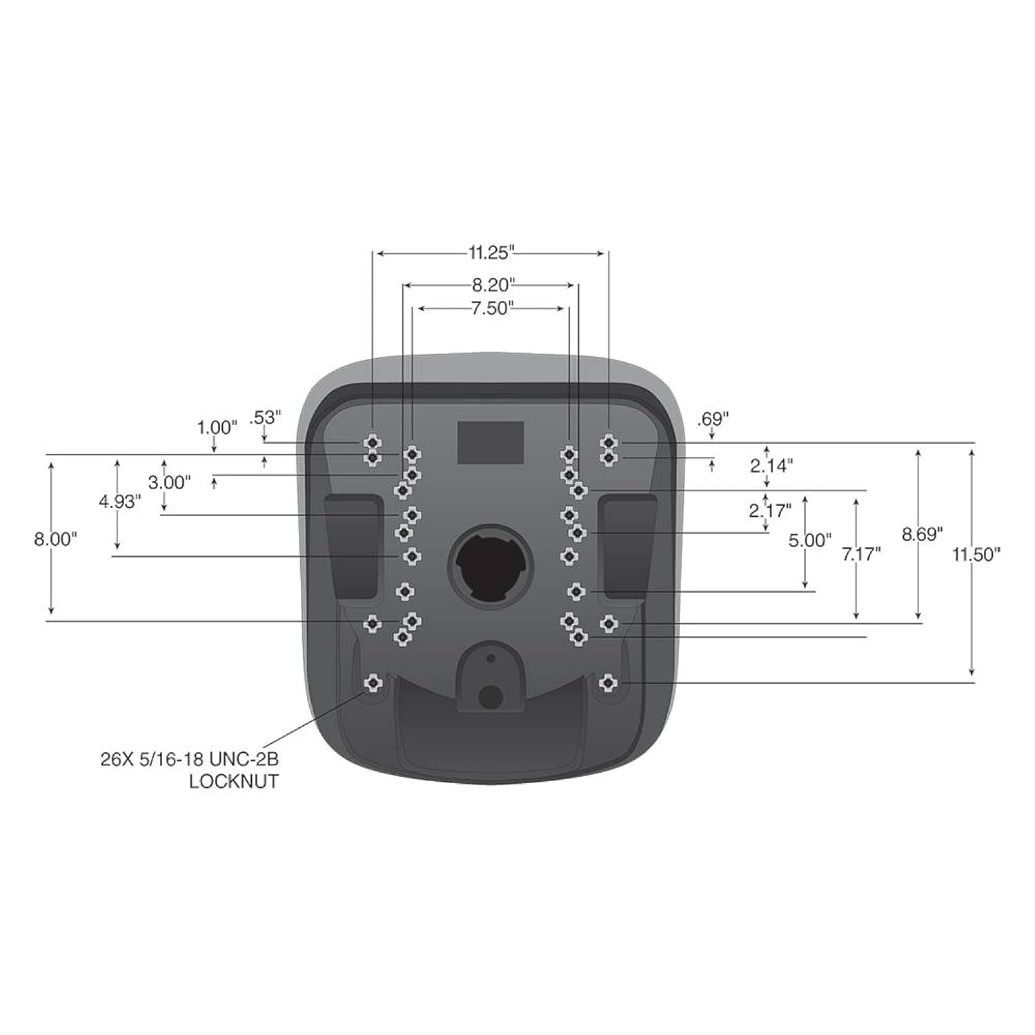 Stens 420-185 seat for John Deere am123666 replaces: John Deere: am103153, am103189, am107972, am108654, am123666 fits John Deere: GX70, GX75, GX95, Srx75, Srx95, 240, 245, 260, 265, 285 & 320; (325, 335, 345, 415, 425 & 445 Serial no. 070, 000 & lower) height: 15 1/2" width: 18" depth: 21 11/16" made by: an OEM supplier central drain corrosion resistant fully waterproof vinyl multi-hole mounting pattern yellow color 5/16"-18 bolts, not included