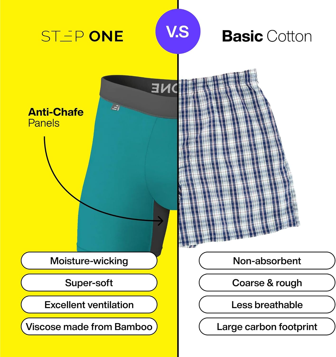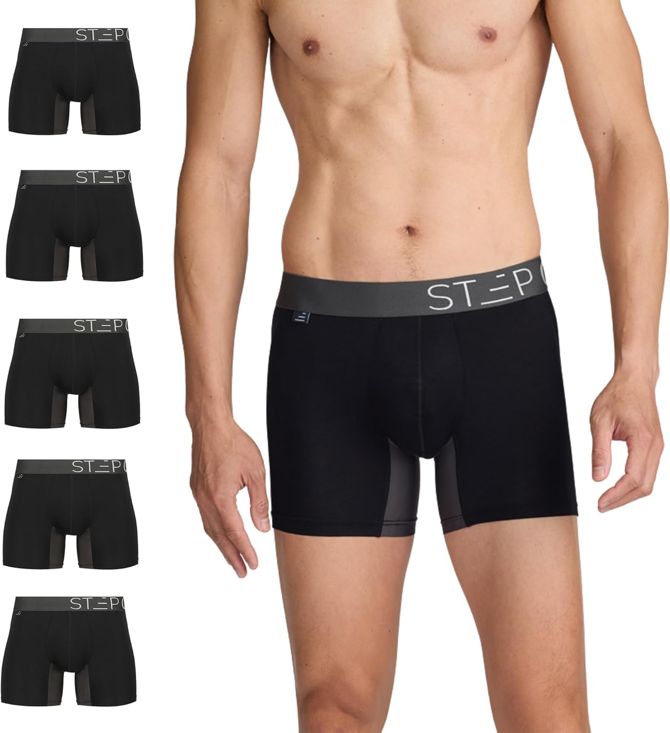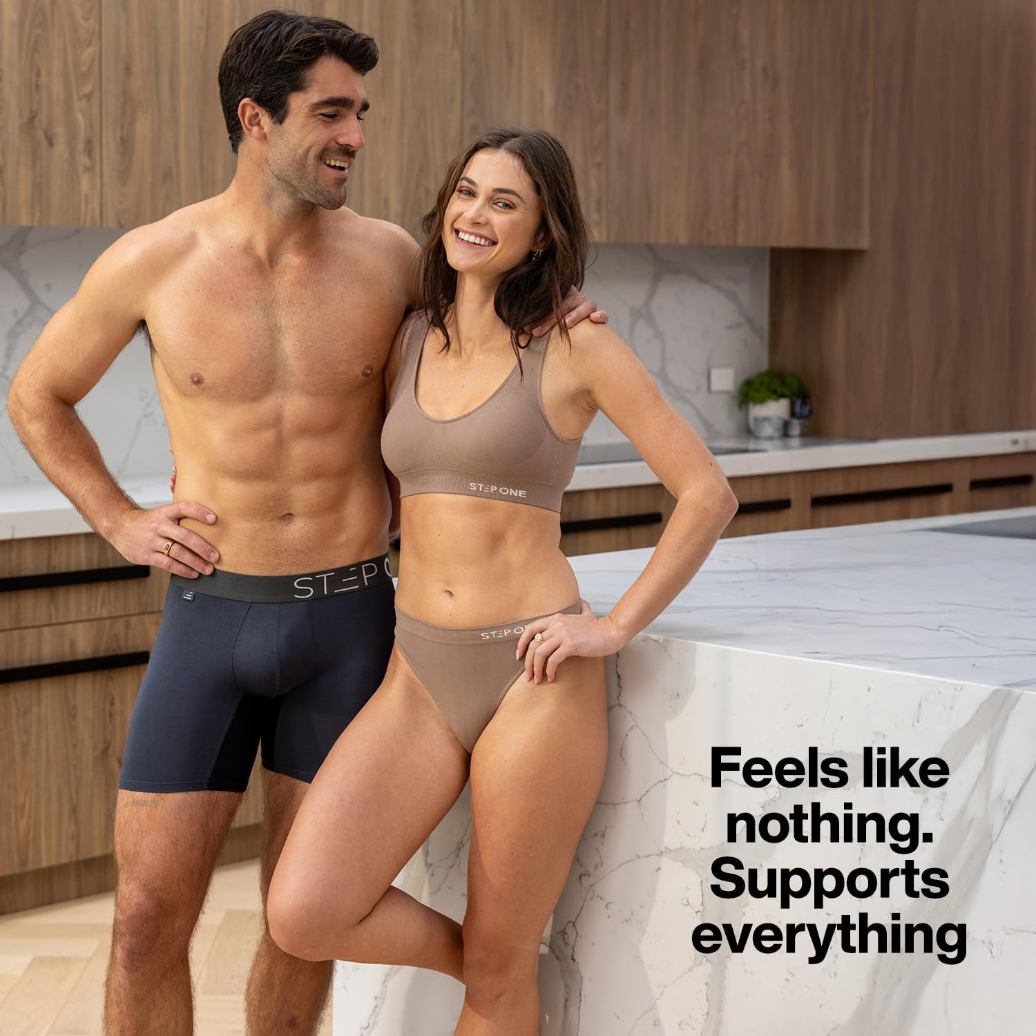 Step One's line of men's underwear briefs change the way you experience men underwear forever. These aren't your ordinary briefs for men; they are a game-changer in terms of comfort, style, and functionality. Our mens underwear boxer briefs provide a sensation so light and breathable, it feels like you're wearing nothing at all. Designed for the man with thinner legs, these mens briefs underwear offer a well-fitting and lifting experience under your men clothing that makes you feel confident and supported. Our 3D pouch effortlessly gathers the boys together, regardless of their size or shape. From small balls to big balls, our mens boxers briefs cradle and showcase your family jewels like a soft velvet pillow. Our underwear for men feature Ultraglyde panels with anti-chafing technology that resists friction and prevents leg ride-up. No more awkward moments or scenarios. Experience the freedom to move and groove without any hindrance or discomfort in your nether regions thanks to Step One's boxer briefs for men. Our moisture-wicking fabric ensures that you stay comfortable, even during intense workouts or long runs. Whether you're hitting the gym, twerking like there's no tomorrow, or going the distance, our mens underwear boxers keep you cool and sweat-free, eliminating any stickiness or discomfort. With their breathable fabric, supportive 3D pouch, anti-chafing technology, and moisture-wicking properties, these men's briefs are the epitome of luxury and functionality. Upgrade your underwear game and experience the ultimate blend of comfort, style, and confidence with our game-changing men's underwear boxer brief.