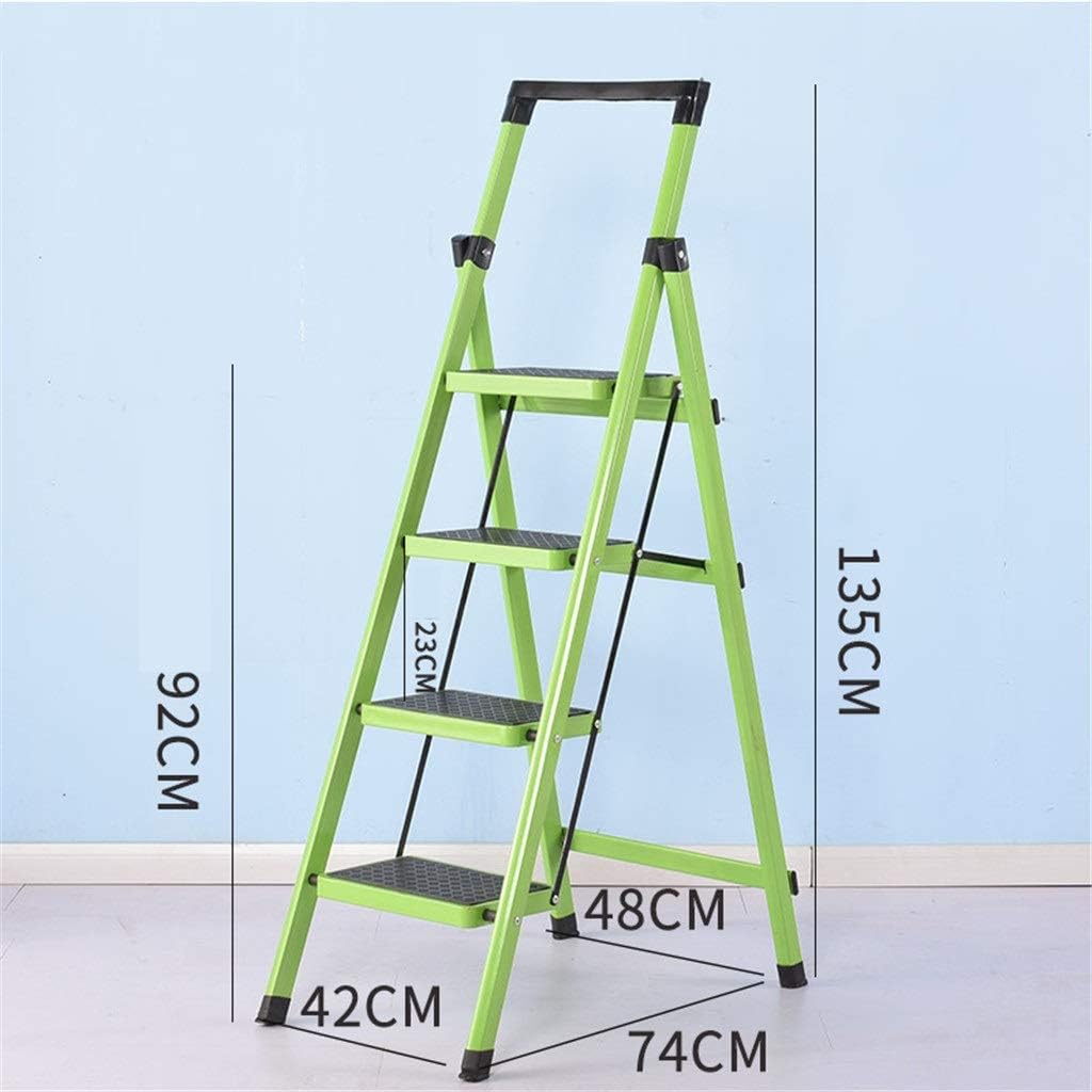 Step Stool Green Four Step Ladder,Engineestepladders One-Sided Iron Stepladder Construction Ladder - Non-Insulated Household Ladder/Green/42 X 74 X 135Cm