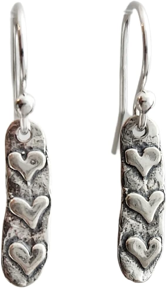 These earrings are the small and lightweight. The drops feature 3 teeny tiny hearts. Perfect for everyday wear! You choose between sterling silver french wires or leverbacks. A great gift for three sisters or best friends! These earrings will arrive in a small zip lock bag, as well as a decorative organza bag. It is recommended that the earrings are kept in the bag when not being worn to keep them nice and shiny. Of course, a quick polish will always work too :-)