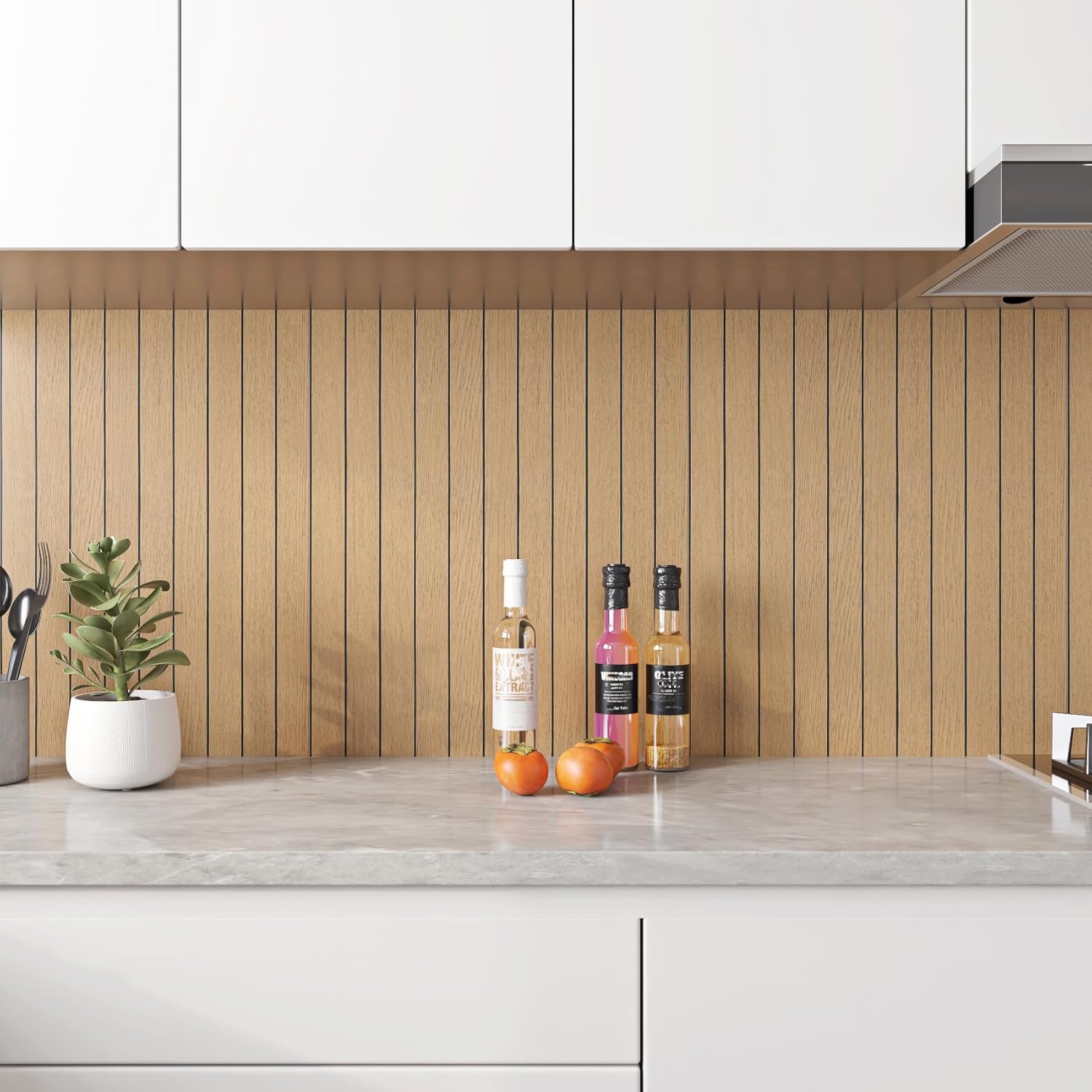 Transform any room effortlessly with our 3D peel and stick wood slat wall panels. These self-adhesive PVC panels feature a realistic multi-tone wood grain finish that adds modern elegance and depth to walls, ceilings, and furniture. Installation is a breeze—just peel, stick, and press to any clean, flat surface, with no tools or expertise needed. Built to last, the scratch-resistant, waterproof PVC construction is easy to clean and protects against scuffs, while the 3D design subtly improves sound absorption, reducing echoes for a more peaceful space. Perfect for renters and DIY enthusiasts alike, these panels deliver a quick, stylish upgrade without the hassle of traditional renovations.Installation Guide1. Clean the wall surface, ensuring it is clean, dry, and smooth.2. Measure the area to be covered, then cut the wood panel wallpaper to the appropriate size.3. Gradually peel back the backing paper while smoothing the wallpaper onto the wall with a squeegee. Avoid peeling too much backing paper at once.4. After application, trim any excess material with a utility knife.5. Firmly press over the entire surface, especially along seams and edges, with your squeegee to ensure strong adhesion.TIP: After receiving your wood slat panels, please unroll and lay them flat. Place heavy objects on top for at least 12 hours to flatten them. This will make installation much easier.