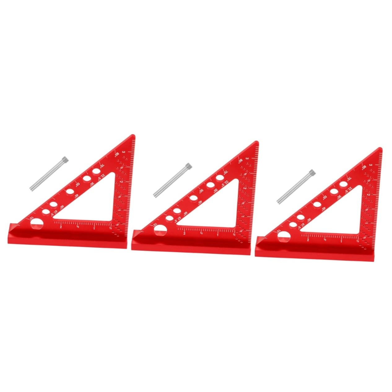 Package List 5 x Triangle Scriber(with fixture) Characteristics -Color:Red machinist square -Material:Aluminum angle clamp for woodworking -Size:9.50X9.10X1.80cm/3.73X3.58X0.71in geometric rulers -Lightweight and portable design makes this measuring tool easy to store and carry, providing convenience for you clamping square. -Excellent workmanship let this woodworking ruler is not easy to deform or break, providing accurate measurements every time 90 degree positioning squares. -This carpenter's woodworking ruler makes a great present option for fathers, grandfathers, , boyfriends, and any woodworking enthusiast metal measuring ruler. -This multifunctional ruler can be used as a woodworking measuring tool, angle ruler, and template measure ruler, of multiple uses right angle clamp. -This triangle scriber is a must-have tool woodworking enthusiast, providing accurate measurements for your woodworking needs metal ruler.Goods Information rulers You deserve to have it.metal ruler With its durable construction, it can withstand long-term use without easily getting damaged.woodworking measuring ruler Can be applied for home, office using.measurement triangle rules Using metal material, durable and firm, suitable for measuring use.framing square want to have professional triangle ruler? If so, our drawing math measurement ruler is carefully prepared for you.measure rulers The compact and lightweight design makes it easy to carry and use