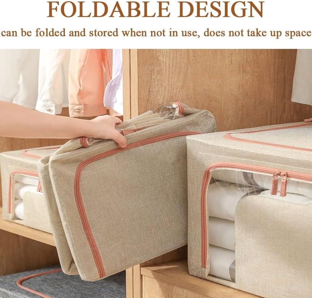 Space Saving: The storage organizer bag is foldable and not take any space, great for store in closets shelf, under-bed, bedroom, even for garment, RV, garage or basement.Product name: storage bagSize: 40*30*20CM50*40*33CM 60*42*40CMCapacity: 24 l/ 66 l/100 lFabric: cotton linenProduct List:1 clothing storage bag (not including other display items)Used on many occasions: The storage bags can be used in a variety of ways, not only for bedroom wardrobe, but also for baby room storage, student dormitory, tool room storage, and towel storage, to conveniently store and keep items clean.This is just a fabric bag.It is stackable or can be flexibly fit into various sized cabinet or wardrobe when filled with items.