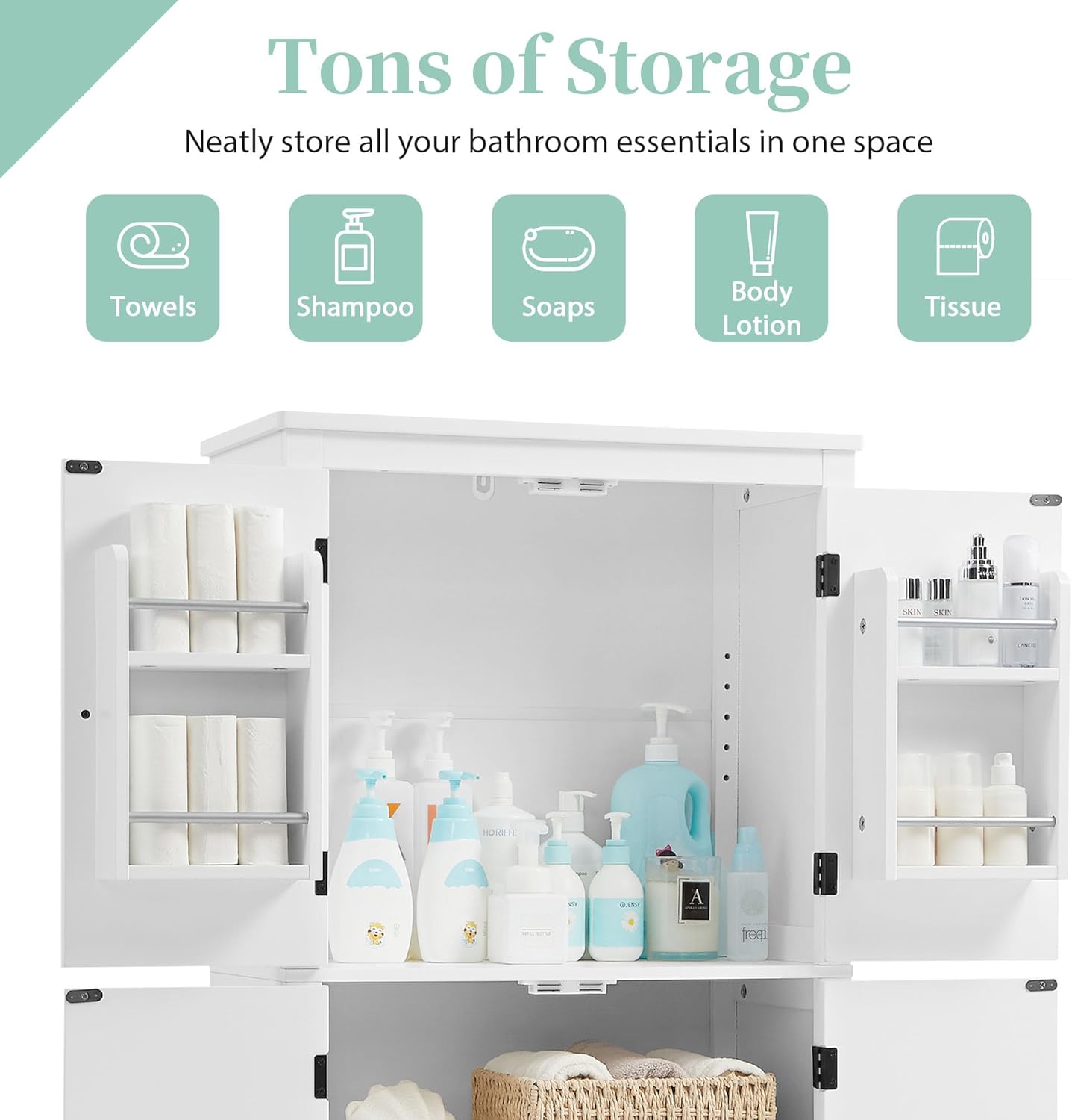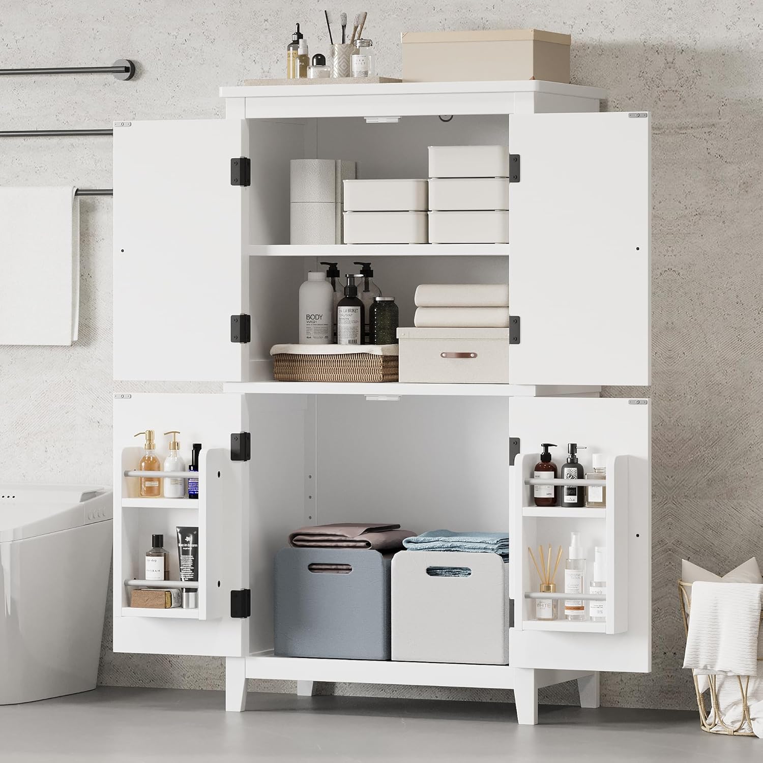 | Item Type Name | Storage Cabinet with Doors and Shelf Rack, Freestanding Bathroom Floor Unit Organizer for Home Kitchen, Flexible Installation, White |