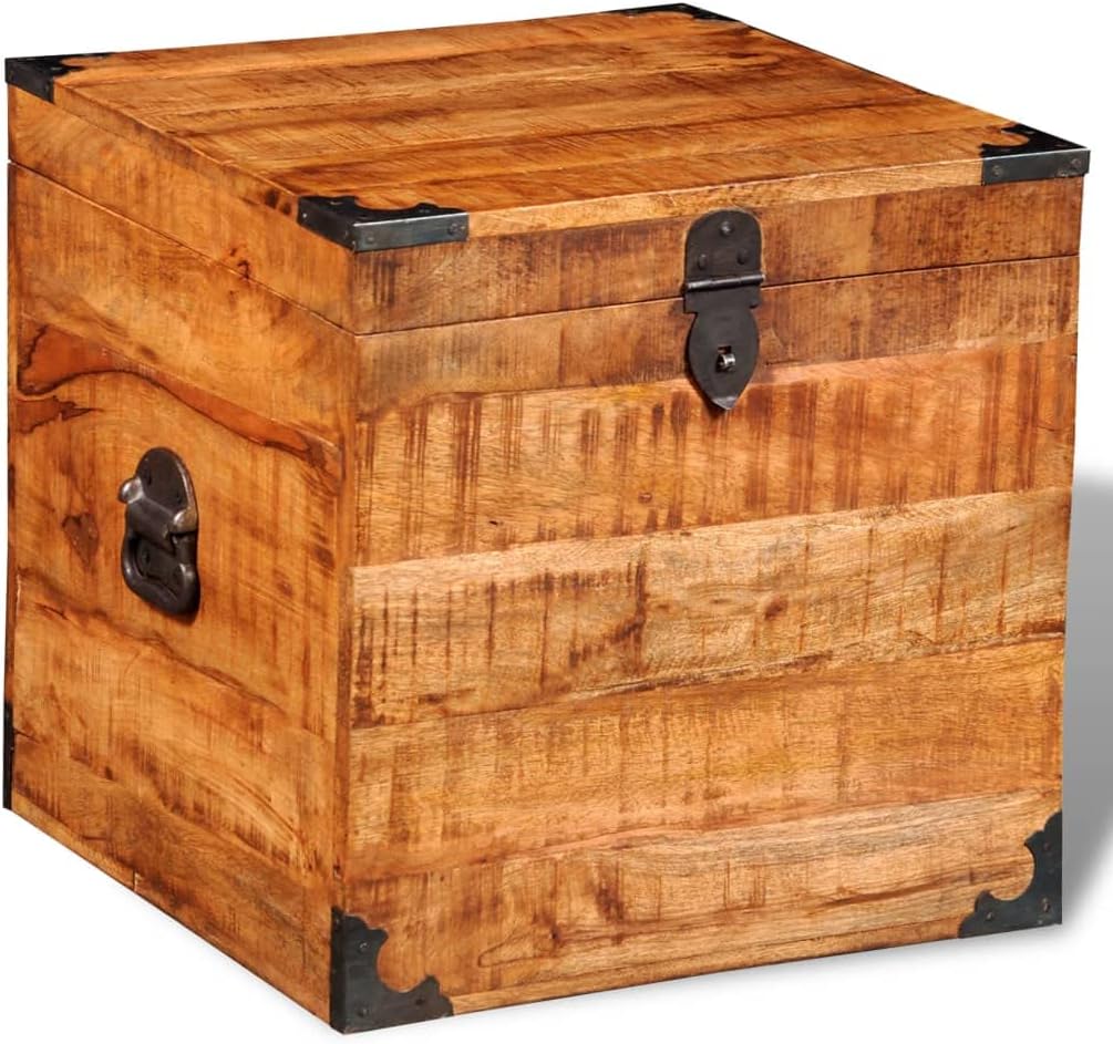 This wooden storage chests, a timeless accessory for your home, will give you ample storage space and help you to keep your things in order. This storage chest is fully handmade of solid wood, which means that every piece is unique and slightly different from the next. The rough mango wood is solid, stable, durable, and beautiful.Important note: colors vary from piece to piece, making each of our storage chests unique; the delivery is random.Material: Rough mango woodSize: 18" x 18" x 18" (L x W x H)Purely handmadeSolid wood with wax coated finish