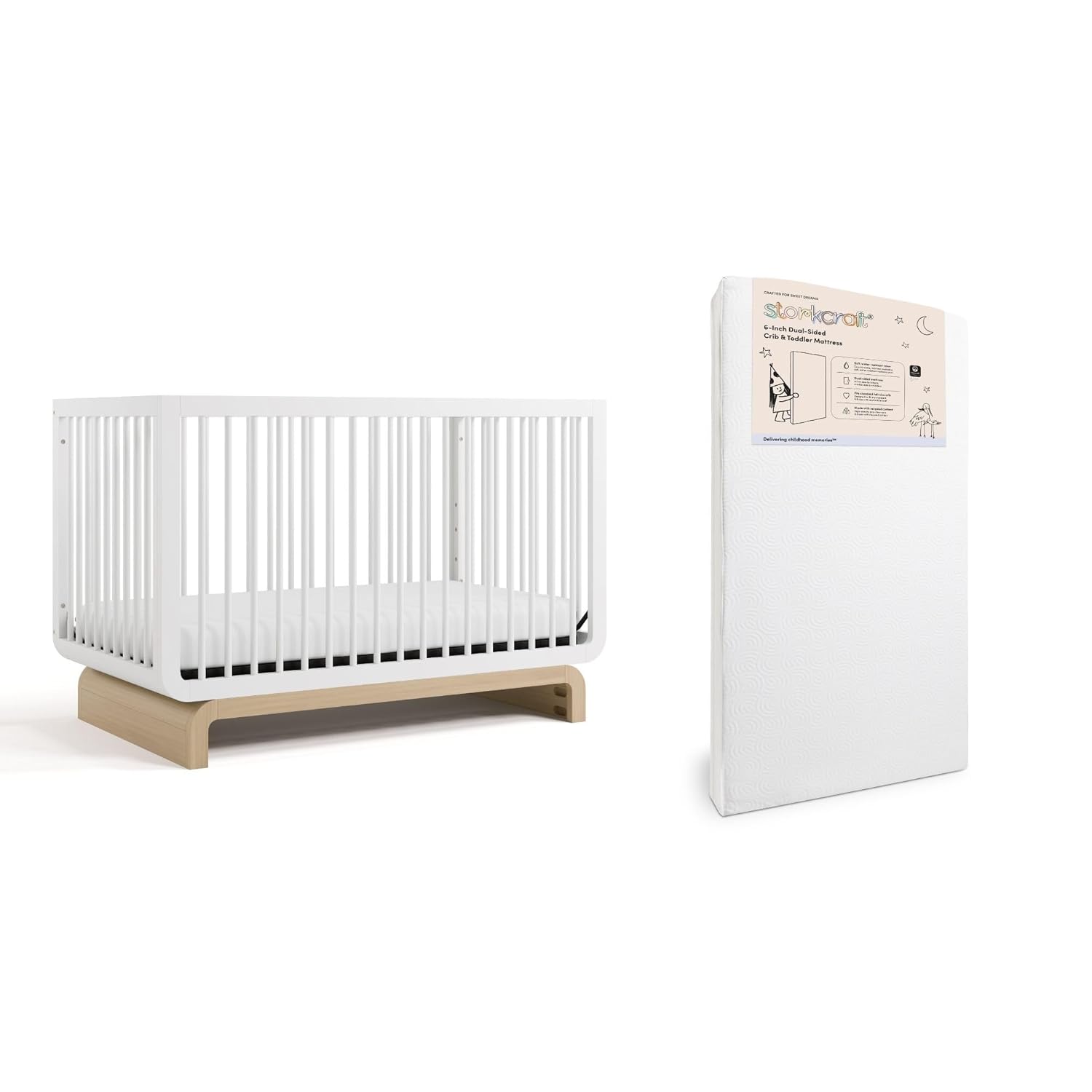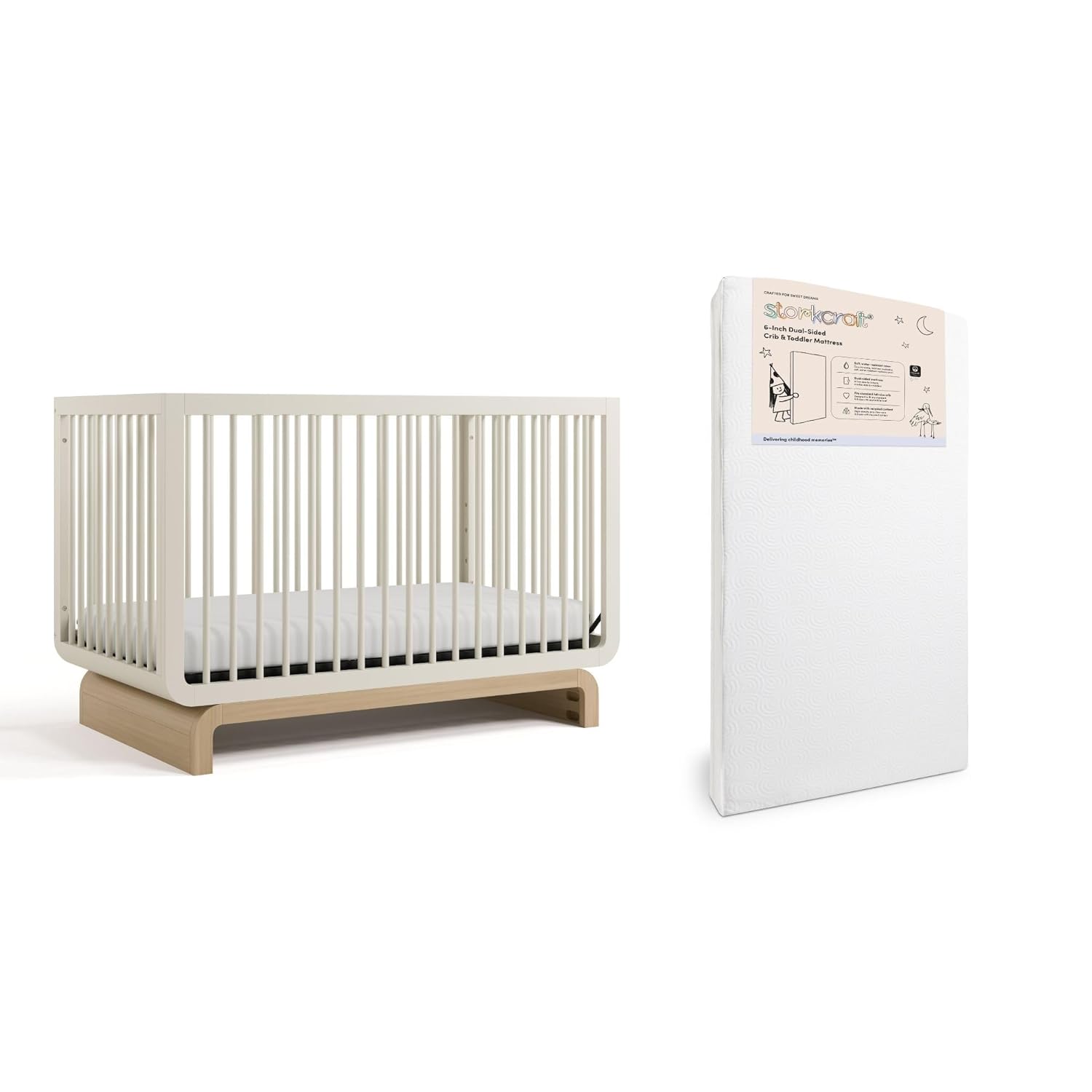 Introducing the Storkcraft® Santorini® Deluxe 5-in-1 Convertible Crib with Bonus Toddler Guardrail – our most stylish crib yet. To make the Santorini® even more special, it includes a toddler safety guardrail — allowing you to transform it into a toddler bed, whenever your child is ready to transition to their first “big kid” bed. The iconic Santorini, hand-sketched and designed in-house, earned the iF DESIGN AWARD 2025, 2024 GOOD DESIGN® Award, A’ Design Bronze Award, and recognition from Fast Company’s 2024 Innovation by Design Awards. GREENGUARD Gold Certified and a Storkcraft® original design, the elegant Santorini® Crib is named after one of the most beautiful places in the world, and is a dreamy blend of quality craftsmanship, timeless beauty, and rounded shapes. The Santorini® is GREENGUARD Gold Certified, crafted from solid wood, and its applied finish has been tested to meet or exceed the applicable ASTM and CPSIA safety standards. The Santorini® is Baby Safety Alliance Verified — meaning it’s been expert tested by third-party, accredited laboratories to meet or exceed all of the applicable category voluntary and mandatory safety standards. Designed to adapt to your growing baby, the Santorini® includes a bonus toddler safety guardrail that spans half of the crib, and its adjustable mattress support base has 4 different height options, so the mattress support base’s position can be lowered as your child grows (please note, this crib may only be used until your child can easily climb out or is taller than 35 inches (89 cm). To support your child’s journey from babyhood to toddlerhood (and beyond), the Santorini® is able to be converted from a crib to a toddler bed (toddler safety guardrail included), daybed, and full-size bed with headboard and optional footboard (compatible Storkcraft® full-size bed conversion kit sold separately). The Santorini® is part of the Art of Nursery™ line of products — hand-sketched, elevated nursery and kids' bedroom pieces designed with love and inspired by the beauty and landscapes around us. Quality-crafted with premium materials and appointed with luxurious details, Art of Nursery™ is an exclusive Storkcraft® collection, designed in-house, that personifies elegance, imagination, and craftsmanship. These grow-with-me pieces are brought to life — with love — by real parents for real families and are smartly engineered to adapt to your growing baby throughout childhood’s ever-changing stages. The Storkcraft® Santorini® Deluxe 5-in-1 Convertible Crib with Bonus Toddler Guardrail is designed to accommodate any standard full-size crib & toddler mattress (mattress sold separately — we recommend any Graco mattress). Storkcraft® is the proud recipient of the Parent Tested Parent Approved (PTPA) Seal of Approval for nursery and children’s bedroom furniture, 2024 PTPA Top Product Award. Backed by a 1-year limited manufacturer’s warranty. Assembly required. Mattress sold separately.