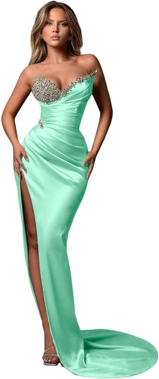 | Fabric Type | Beaded Satin Straplss Mermaid Slit Prom Dresses 2025 |