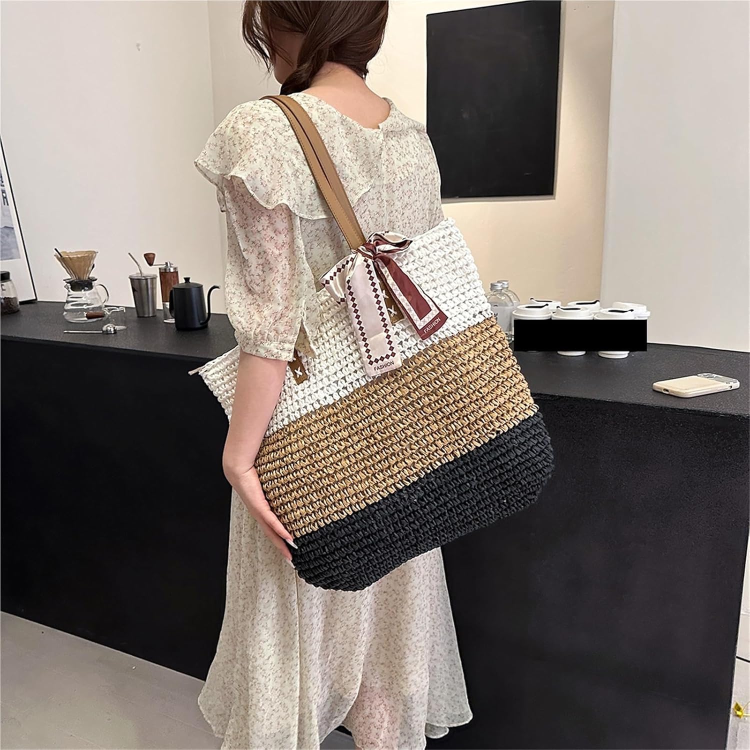 Material: This bag is made of soft straw material, combining fashion and classic beauty.Versatile daily use: This hand-woven shoulder bag is suitable for parties, leisure, commuting, beaches, summer vacation, picnic camping, outdoor hiking, etc. Summer beach bags are ideal travel accessories, daily matching, fashionable and versatile, easily creating a fresh holiday style.Special weaving design: The unique straw streamlined weaving design highlights the beauty and perfectly matches your clothing, saying goodbye to cumbersomeness. It can be carried with.Product name: Straw bagMaterial: StrawWeight:280gSize:46*44*5cm/18.11*17.32*1.96inApplicable people: WomenPackage contains: 1 bag1 Ribbon