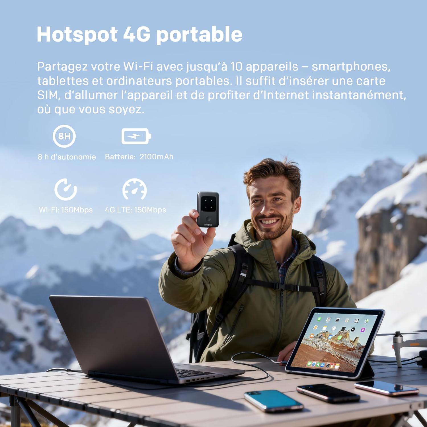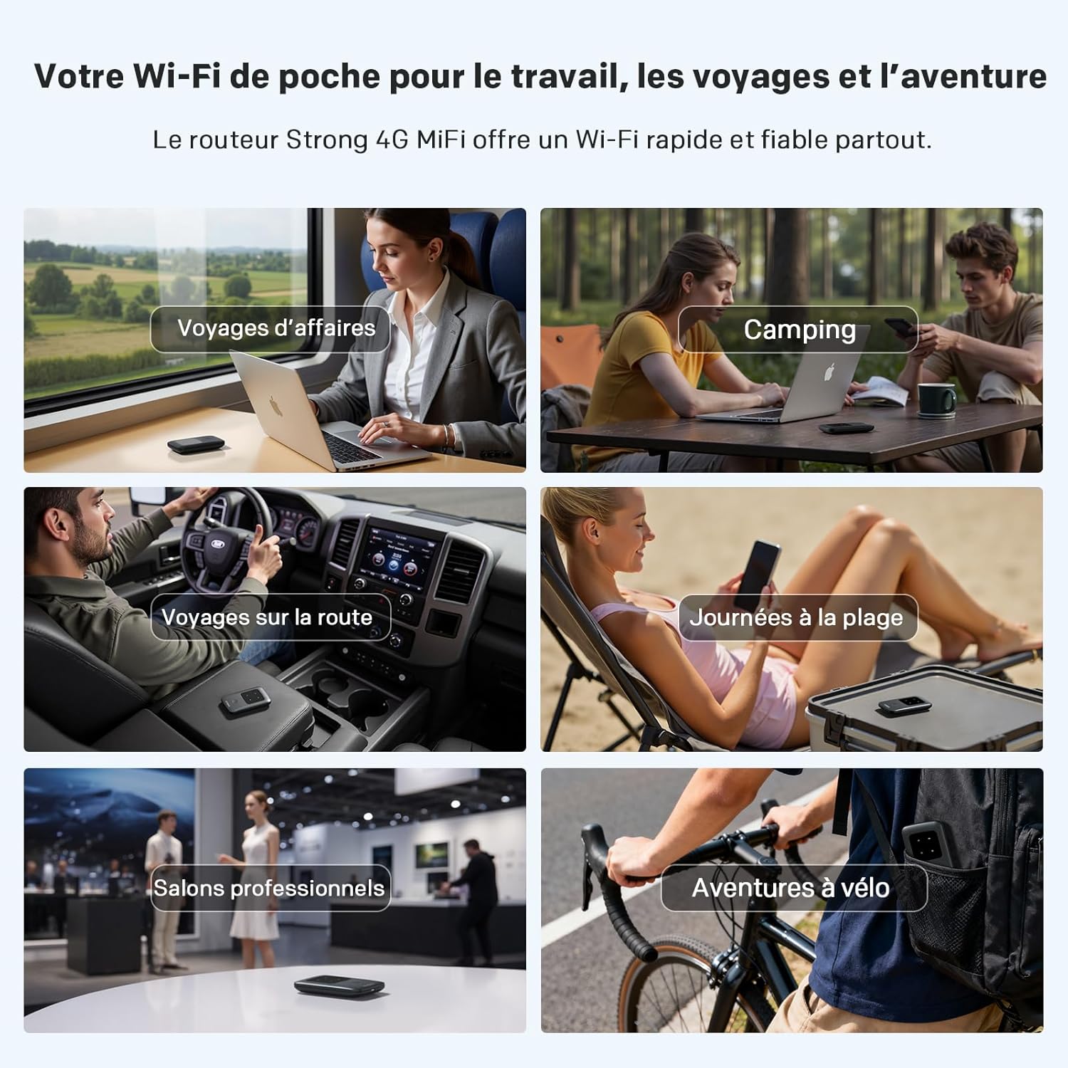 Do you need your internet access in any place and when you are on the move? Strong 4G portable Hotspot 150C is what you need! Bring your intrenet connection into your pocket. With its extremely compact and elegant design, you just have to insert a SIM card* from any operator and immediately enjoy your Internet connection at speeds of up to 150 Mbit/s, no configuration required, no mandatory subscription, select any operator of your choice. Share your high-speed internet connection up to 150Mbit/s with up to 10 Wi-Fi devices simultaneously. *SIM card is not included