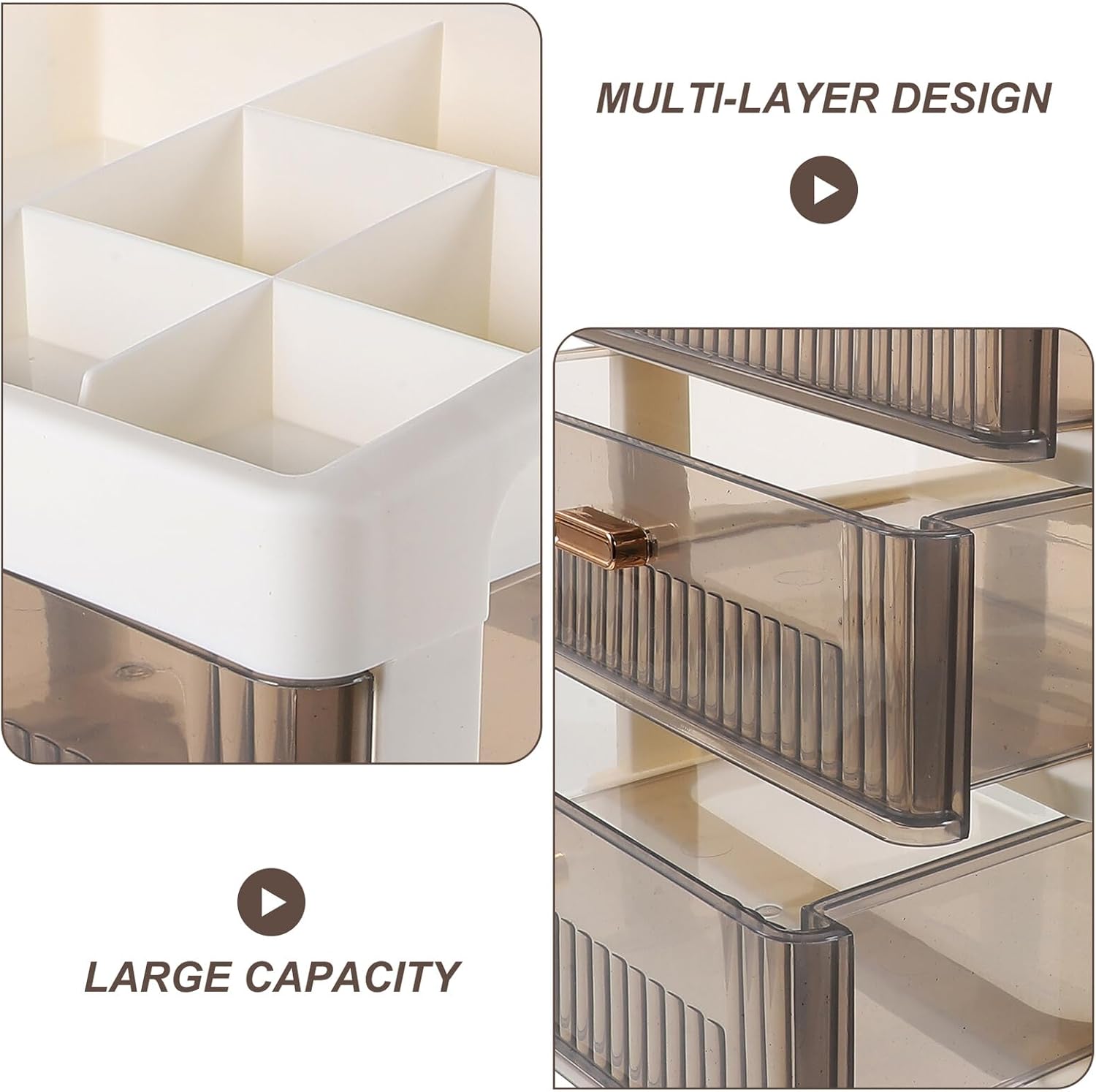 Package Include 1 x desk organizer Characteristics -Material:PP desk organizer with drawers - Size: 32.00X23.00X17.00cm/12.58X9.04X6.68in multi-function desk organizer - Color: White small drawers for desktop -Product Info:Drawer storage box - Practical drawer type storage box is suitable for placing on anywhere, bathroom, living room, etc small plastic storage drawers. - Desk Organizer can store various items at the same time, save space and keep tidy plastic storage drawers. - The simple color and appearance make it suitable for most office and study room decoration styles mini plastic drawers. - This drawer type storage organizer can help keep your things organized, find what you need quickly and efficiently plastic bin with drawers. - Take up less space and keep your place tidy, can be easy to clean with water, for use table storage holder.Goods Descriptionvanity drawers This is a Desk Organizer, made of strong material, which is practical for use.plastic organizer The item contains multiple grids for storing different cosmetic.desk organizer Also, the desk organizer is suitable for storing stationery and sundries.desktop organizer It can receive lipstick, nail polish, make-up brush, perfume, essential oil, lip gloss, skin care products and other cosmetics