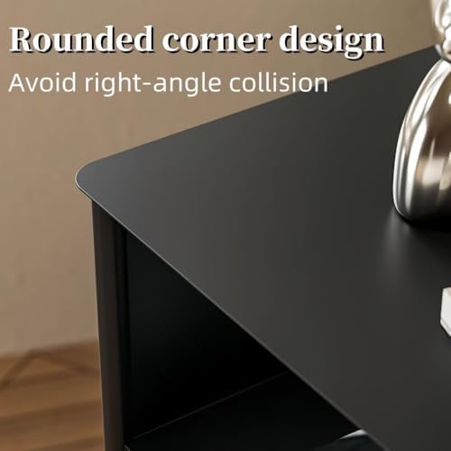 Stylish Rolling Bedside Table with Storage - Triangular End Table on Wheels, Multi-Purpose Nightstand with Metal Frame for Living Room - Modern Black Design