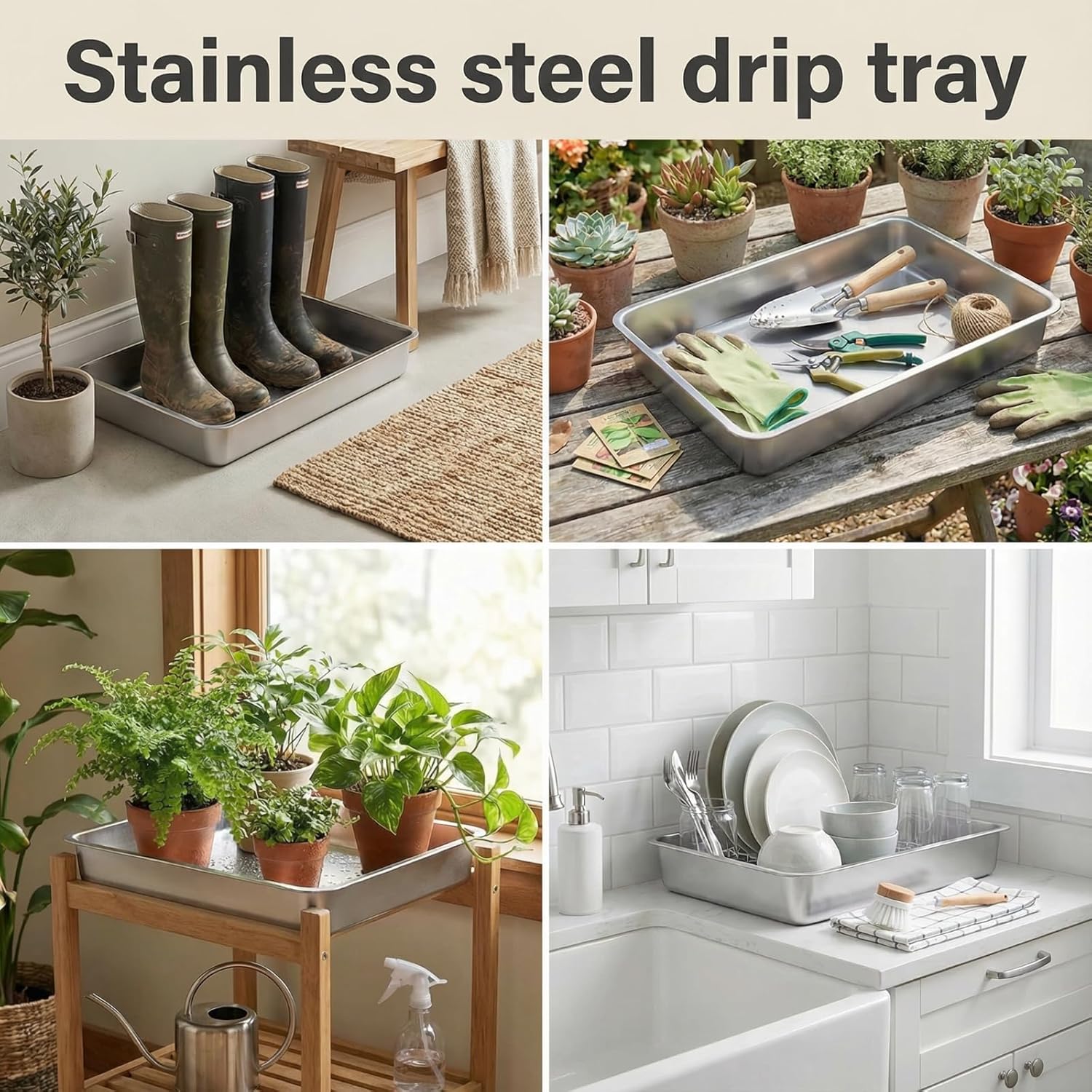 Feature: Reliable material: The under sink mat or litter box panes are made of stainless steel and have no pointed edges, which are sturdy and reliable. Nice gift: The metal shoe trays are a thoughtful gift for friends and family. They are practical and a nice way to express your sincere care, love and thoughtfulness. Basic information: Quantity: 2 Material: stainless steel Color: as shown in picture Size: 24 x 16 x 4 inch/ 60 x 40 x 10 cm. The thickness of non slip rubber feet: 3 mm/ 0.12 inches Package include: 2 x Stainless pet litter box 15 x Non slip rubber feet