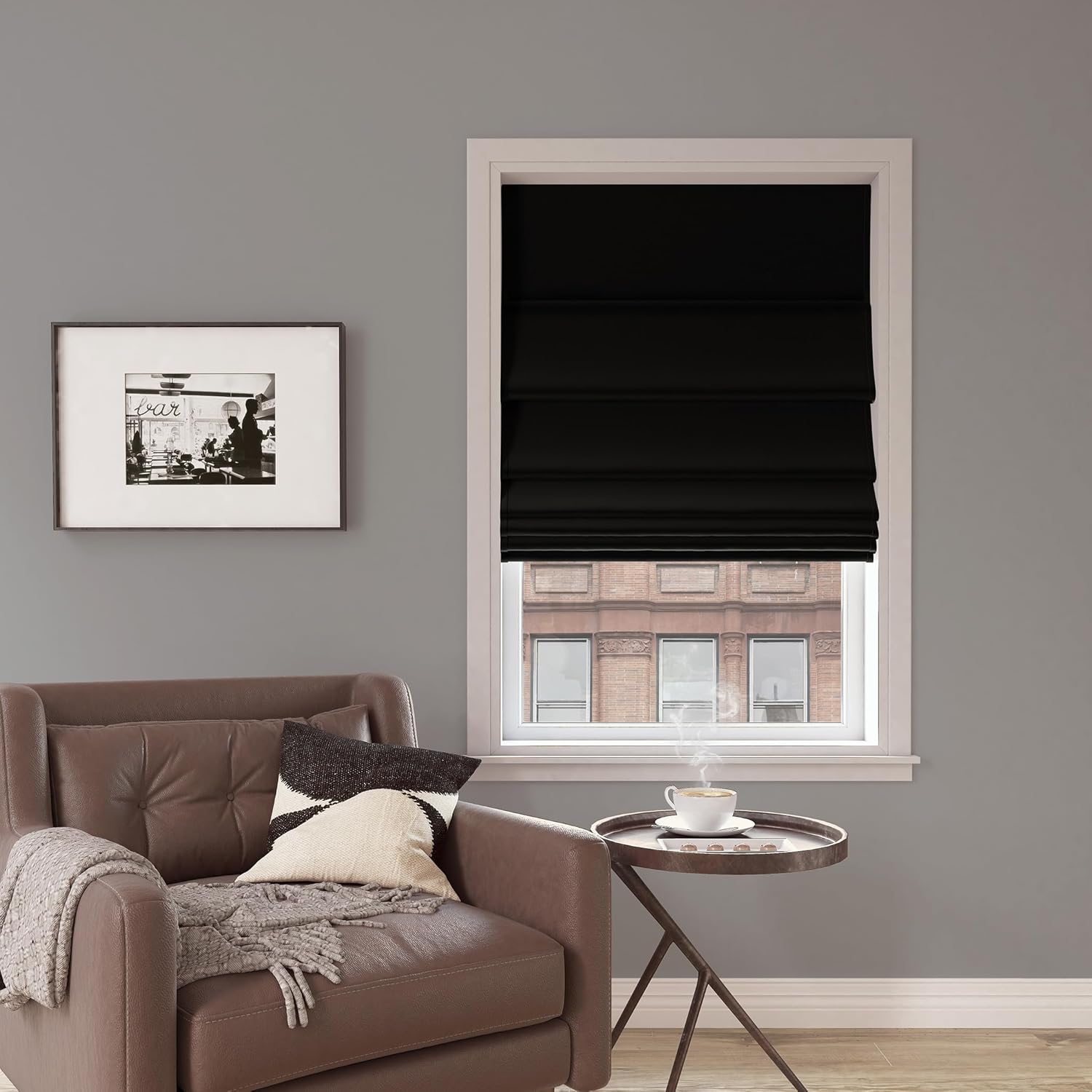 Add sophisticated style and function to windows in any room of your home with Sun Zero Monte Velvet 100% Blackout Cordless Roman Shades. Sun Zero Total Blackout technology is laboratory tested to block out 100% of light, reduce outside noise by up to 50%, and decrease energy lost through your windows by up to 45%. Comfort is optimized with thermal properties that help keep summer heat and winter chill out of your home. Best for Kids Certified cordless design with included handle pull for easy adjustment. Use in your entertainment room to eliminate screen glare and reduce distracting outside noise, or in your bedroom for enhanced privacy and a sounder, more uninterrupted sleep. Mounting hardware included for inside or outside mount as desired. Gently remove the face fabric from the velcro attachment on the front of the headrail as well as from the plastic anchors. Place fabric on a clean, flat surface. Spot clean using a soft nonabrasive damp cloth. Rinse out cloth thoroughly as needed while cleaning. Completely air dry before reattaching shade to the plastic anchors and securing shade at top with the velcro strip.