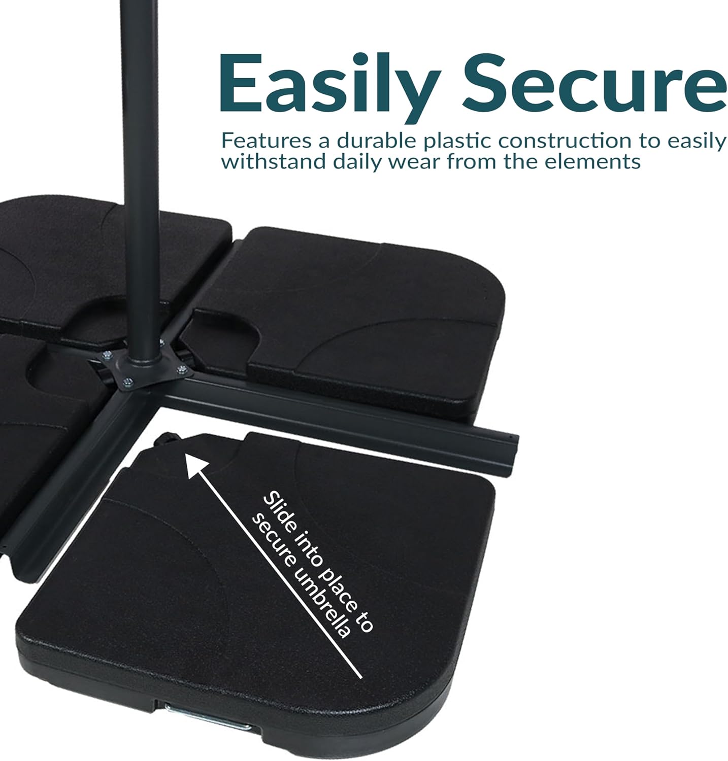 This outdoor offset patio umbrella with a cantilever and crank will add a refreshing shaded space to any patio, deck, yard, or garden. This outdoor umbrella with base is great for hanging over outdoor dining tables, hammocks, deep-seated patio furniture sets, and more. Each umbrella has a durable steel pole and 8 steel ribs for extra strength and durability against the elements. The 2 twist knobs on the umbrella pole may be loosened, allowing the center of the umbrella to rotate so the umbrella base does not have to be moved once it has been set in its desired location. The deck umbrella is made from 100% polyester for extra durability and comfort. The outside umbrella can be easily weighed down with the included 4-piece round base set. Easily open, tilt, fold up, and store this umbrella! Make sure to fold and tie back in harsh weather conditions for extra longevity.