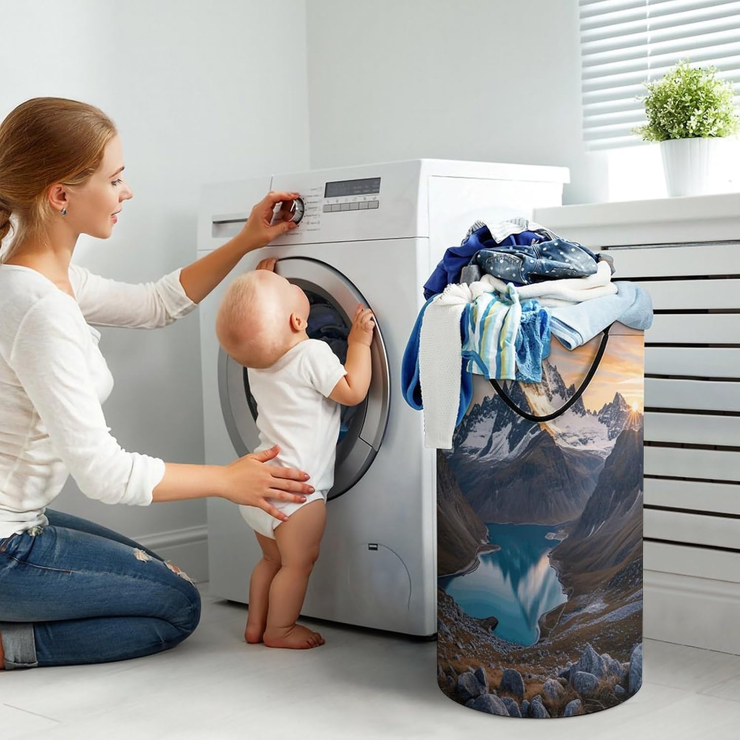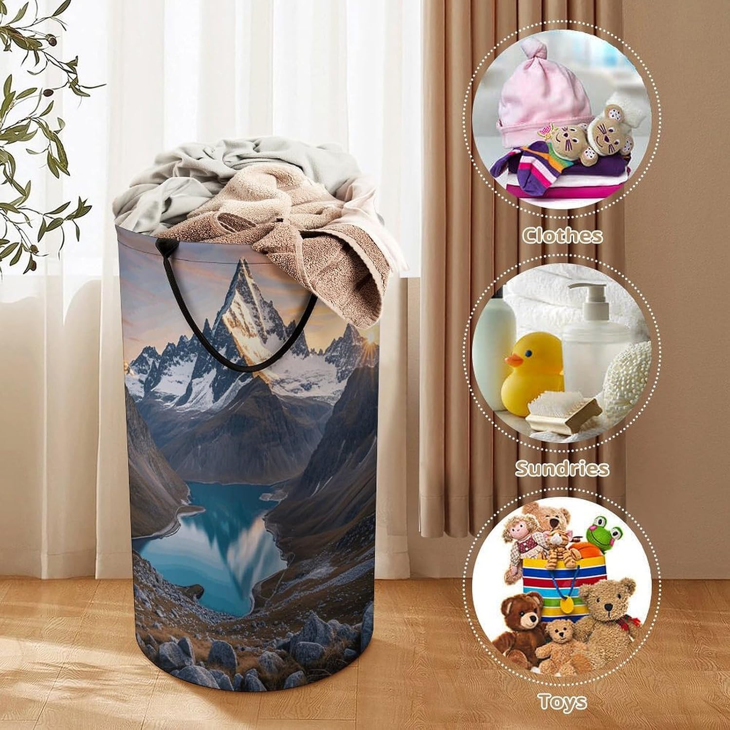 Tired of messy piles of dirty clothes cluttering your bedroom, bathroom, or laundry room? Meet your new organizational essential: the Large Collapsible Laundry Hamper, designed to blend functionality, and style seamlessly into your daily life. Whether you're a busy parent, or a frequent traveler, this versatile hamper Dirty clothes hamper clothes hampers for laundry Large Tall Clothes Basket Bin Decor Storage of Dirty Clothes is crafted to simplify your routine and elevate your space.With its generous size, this hamper easily handles a week's worth of laundry for individuals or small families, eliminating the hassle of multiple trips to the washing machine. From bulky sweaters and bed linens to towels and clothes, Removable Laundry Bags Laundry Hamper Bag Large Laundry Basket effortlessly accommodates all types of fabrics. Say goodbye to overflowing baskets and hello to a tidier, more organized home.More than just a Foldable Washing Bin Collapsible Laundry Bag Sunrise Mountain laundry basket, this hamper adds a touch of modern elegance to any room. Its neutral, minimalist design complements bedrooms, bathrooms, closets, RVs, campers dorms. Use Waterproof Washing Bin Decorative Tall Hamper Large Storage Basket to store blankets, or seasonal items, its versatility knows no bounds.