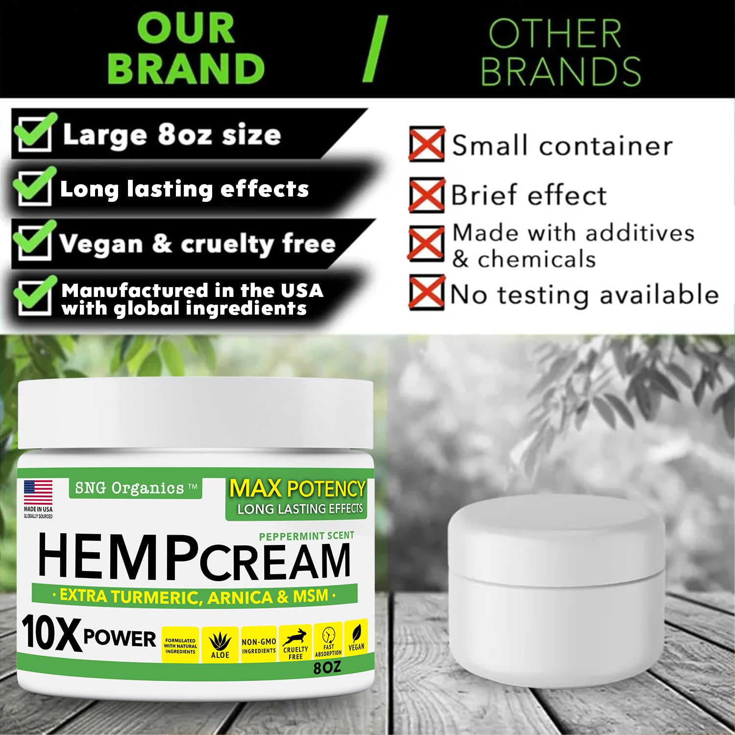 Hemp Cream by Super Natural Goods is a hemp-infused topical cream formulated to provide a cooling skin sensation during use. It is not a neutral daily body lotion, but a sensory-focused topical cream designed for selective body application when a refreshing feel on the skin is preferred. The formula combines botanical ingredients such as turmeric, arnica, aloe vera, and menthol with hemp seed oil to create a sensory-driven topical experience. Upon application, the cream spreads smoothly and absorbs comfortably, delivering a cooling and aromatic botanical feel without leaving a greasy or heavy residue. Hemp seed oil is a commonly used cosmetic ingredient valued for its lightweight texture and skin-conditioning feel during application. This topical cream is intended for selective body use as desired, rather than all-over daily moisturizing. It fits into routines where a cooling topical experience with botanical character is preferred over a neutral or fragrance-focused body lotion. For external use only. This product is not a drug and is not intended to diagnose, treat, cure, or prevent any medical condition.