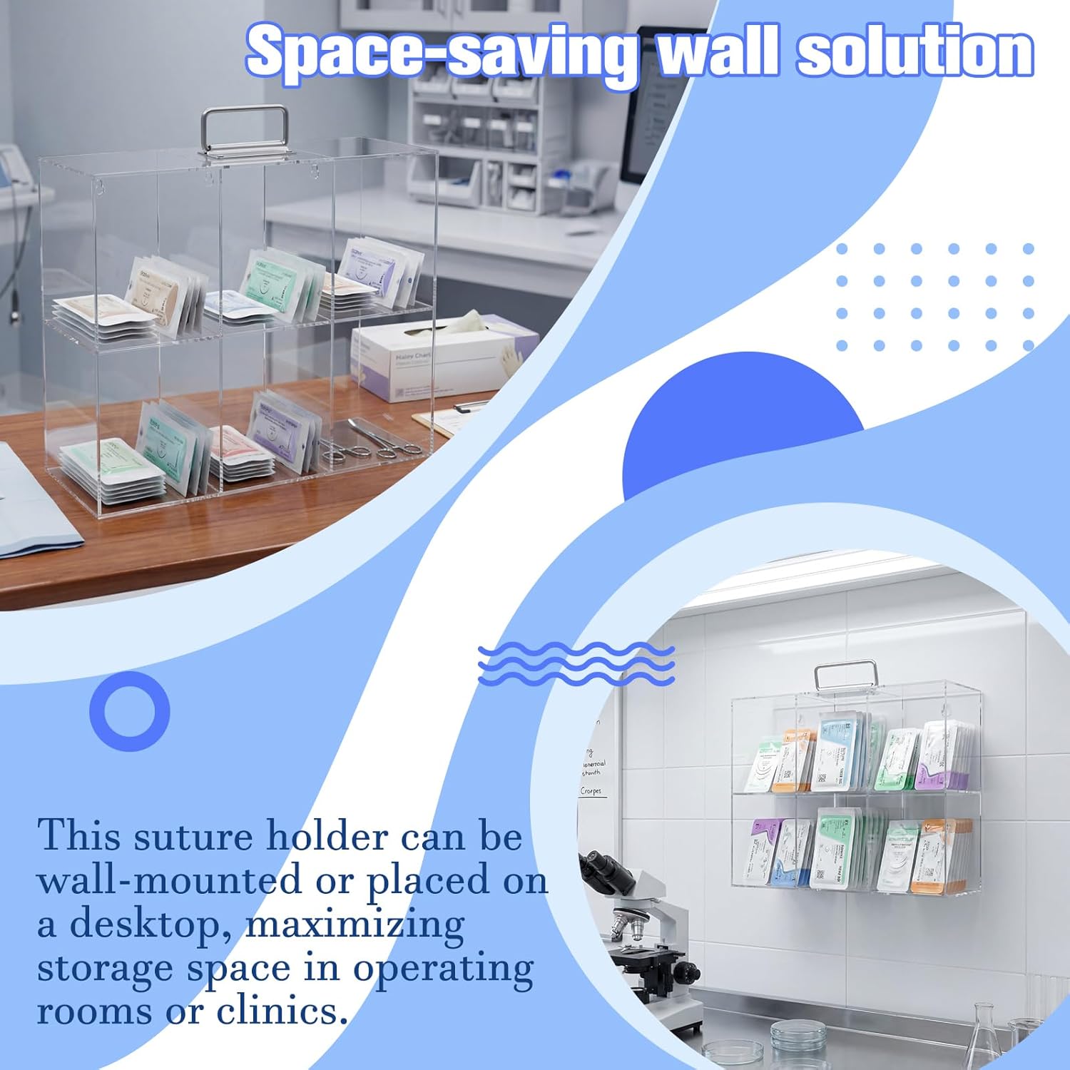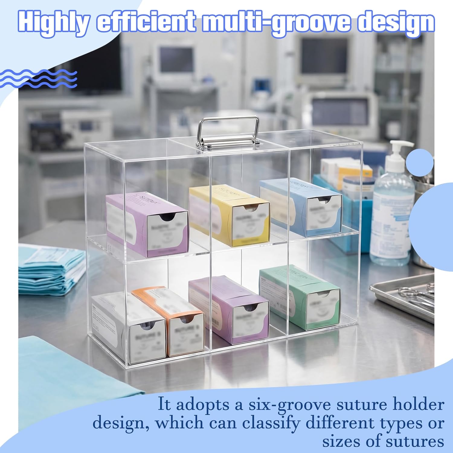 Features: Sturdy medical grade construction: This medical suture rack is made from materials suited for clinical settings. The acrylic structure provides reliable support for suture packages. Its design focuses on fulfilling the organizational needs of a healthcare environment. Simplified inventory management: This suture rack helps simplify stock management by providing a dedicated, organized space for sutures. The transparent view and structured slots make it easier to conduct visual checks for restocking, supporting efficient inventory control. Specifications: Material: acrylic Color: clear Size: about 15.75 x 5.63 x 12.2 inches Package includes: 1 x Acrylic suture rack Notes: Manual measurement, please allow slight errors on size. The color may exist a slight difference due to different screen displays