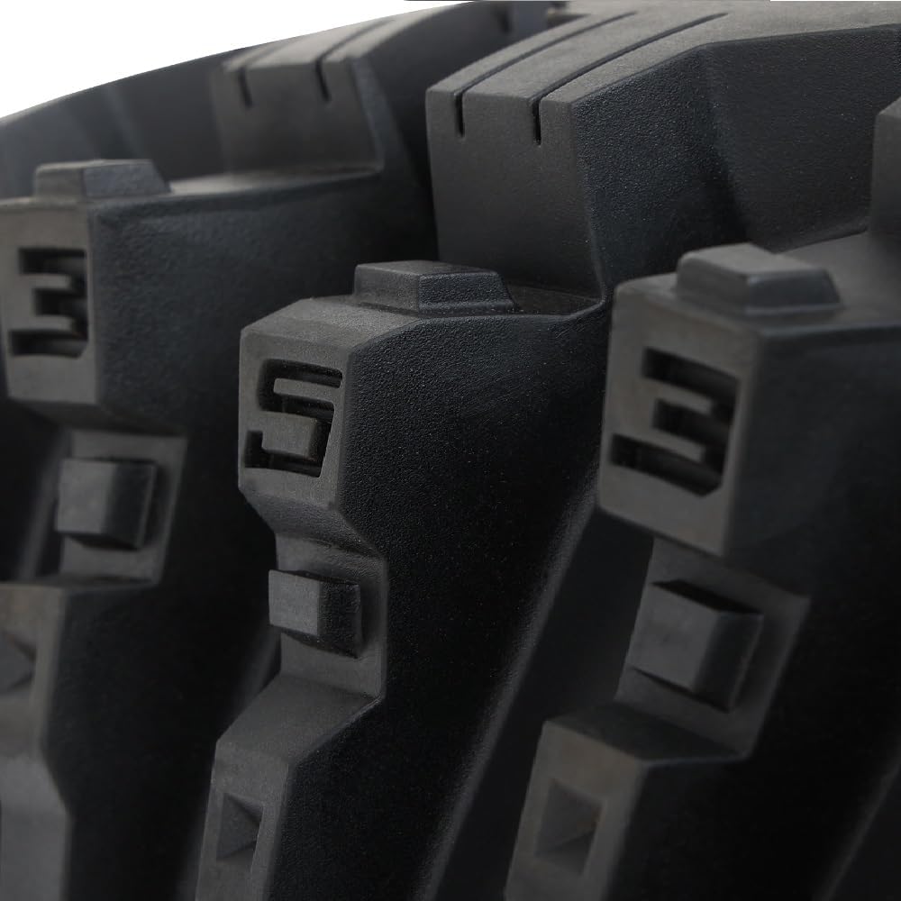 Our continued tire development evolution raises the bar for rock crawling and challenging terrains by delivering our most advanced tread to date. Deep .65 - 1.0 inch inter-locking tread blocks and optimal void excels on the trails while the wider spaced, staggered tread blocks grip in the loose terrain. RC500S, the S or sticky compound features a combination of our proprietary soft tread compound and flexible 8-ply rated carcass which results in one of the best rock crawling tires on the market. The soft compound and carcass flotation set a new standard in slick surface traction. The new carcass maximizes ride quality and the trackability is unmatched on loose or hard pack terrains. The super deep rim guard protects wheel lips and helps avoid pinch flats at lower psi.
