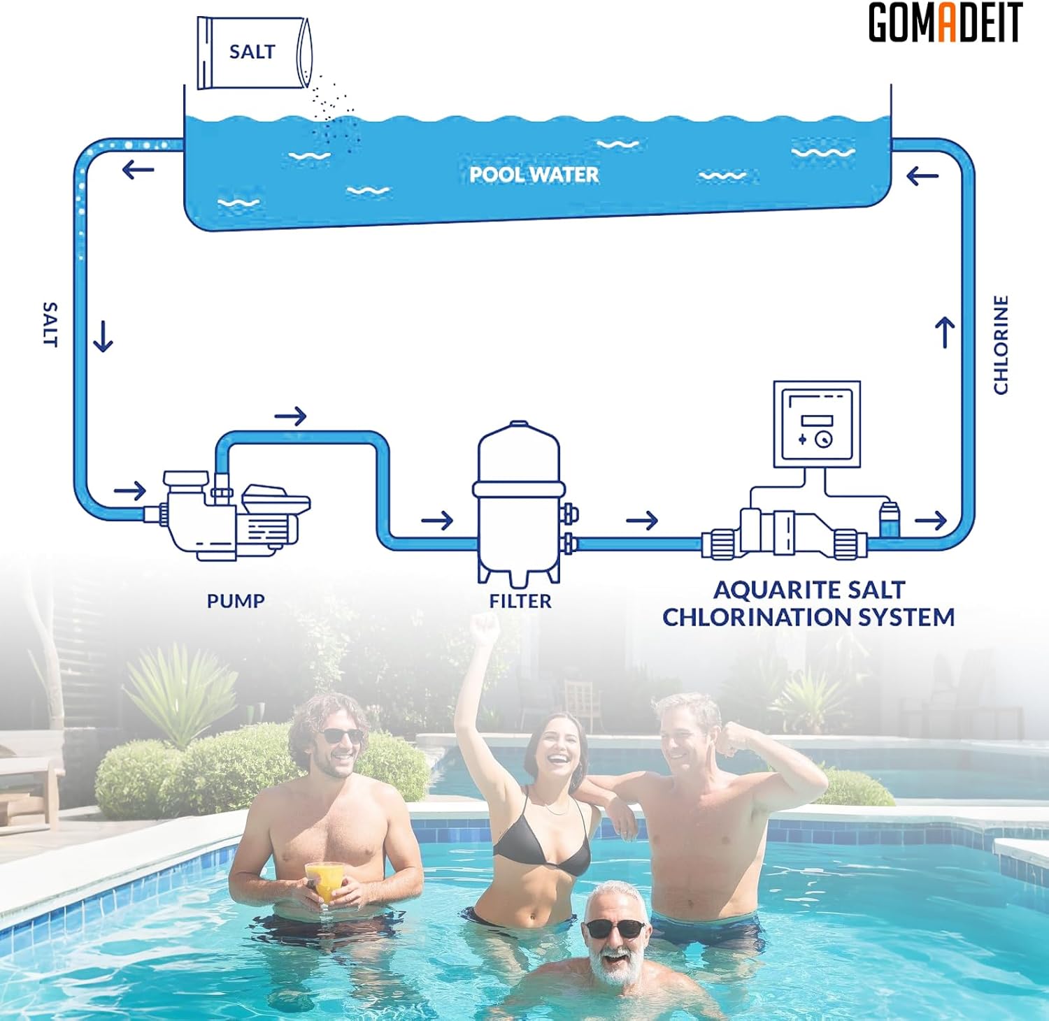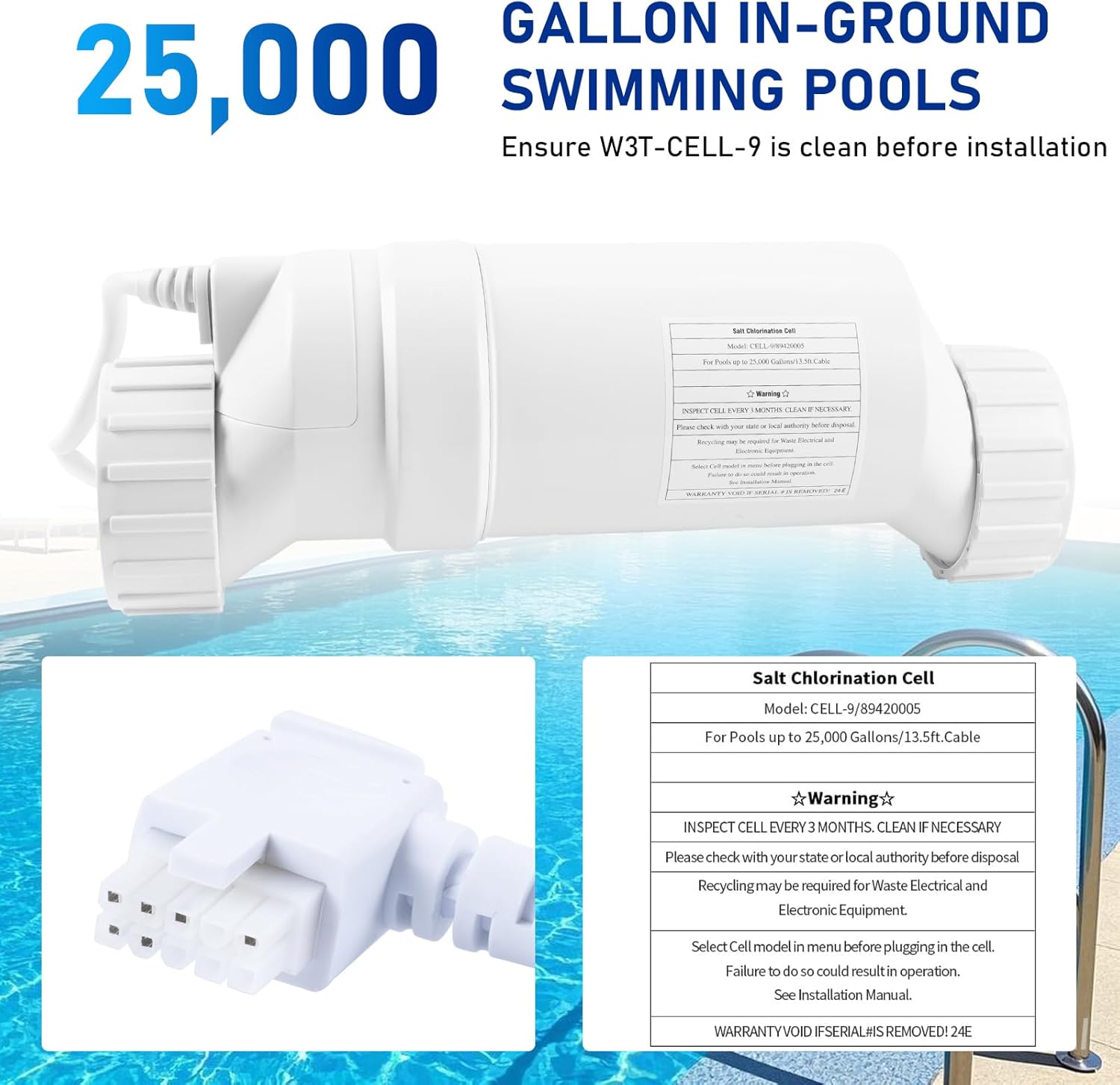 GOMADEIT Salt Water Pool Chlorinator System | Salt Cell For Pool | Salt Cell Fits Hayward Turbo Cell T-9 replacement | W3T-CELL-9 | For In-Ground Swimming Pools up to 25,000 Gallons