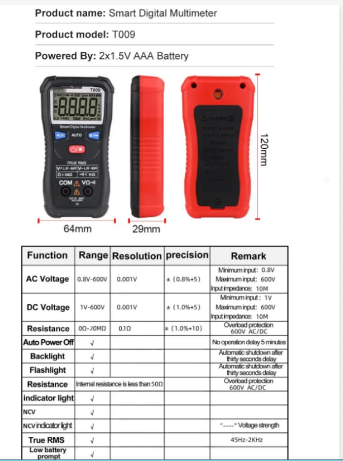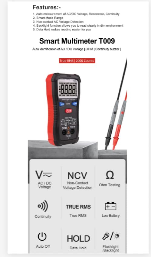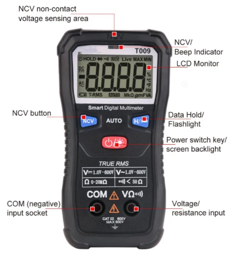 T009 Digital Multimeter Electrical Instruments Tester Auto Range Meter Multimetro Tool NCV