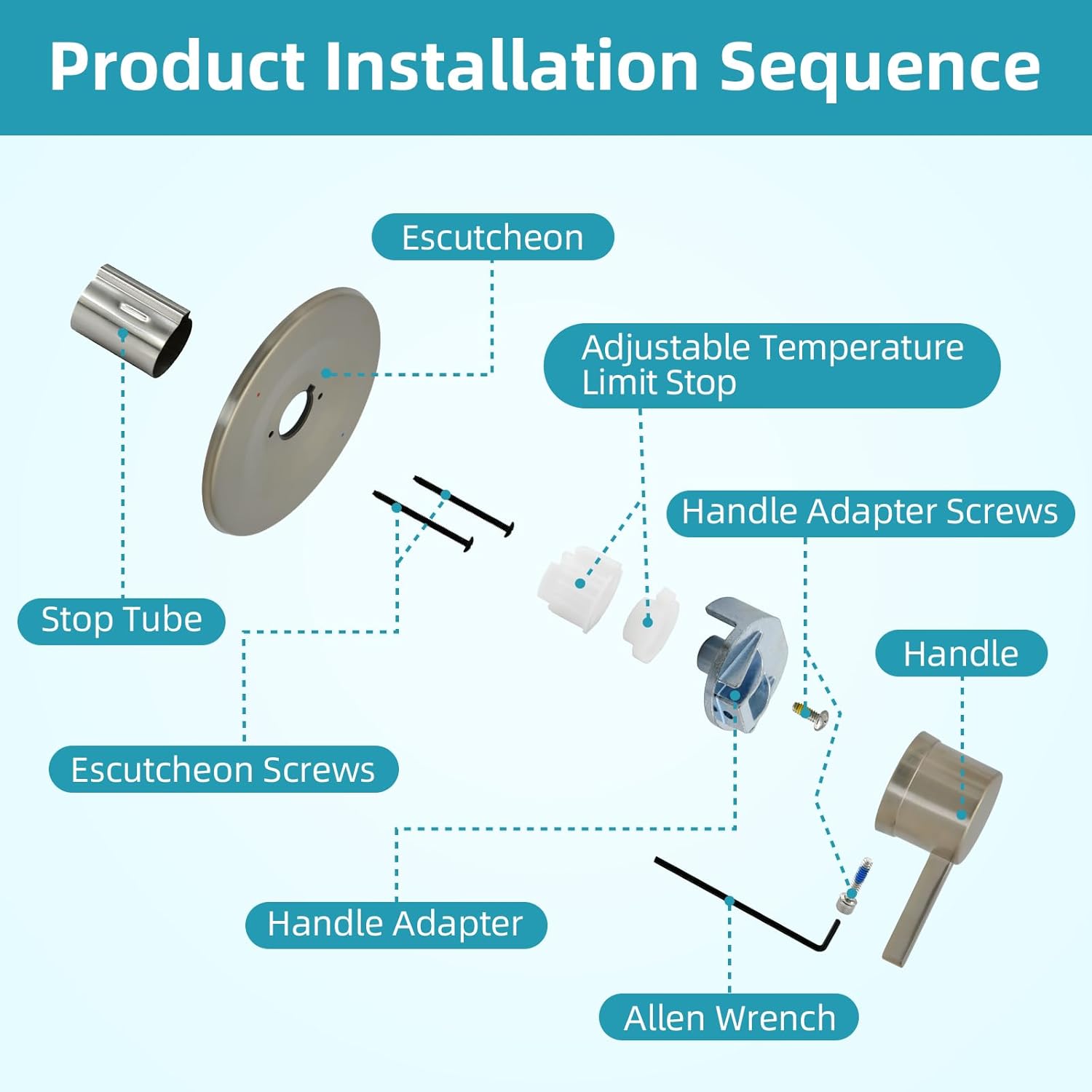 | Included Components | 1*Shower Handle, 1* Cover Plate,1*Temperature Limit Stop and a set of installation accessories |