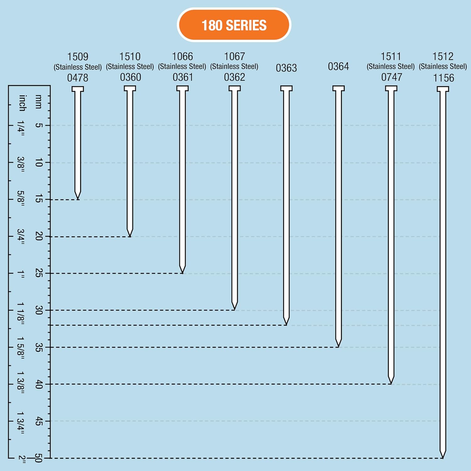 High quality nails for nail gun providing optimum performance on applications such as soft and medium woodwork, fence panels, garden building assembly, flooring and panelling, cabinet and plywood assembly, trellis work, door and window assembly, subflooring. For use in both hand and electric tackers. For use in Tacwise 181ELS, 191EL, 191ELS, Duo 35 and Duo 50 nail guns.