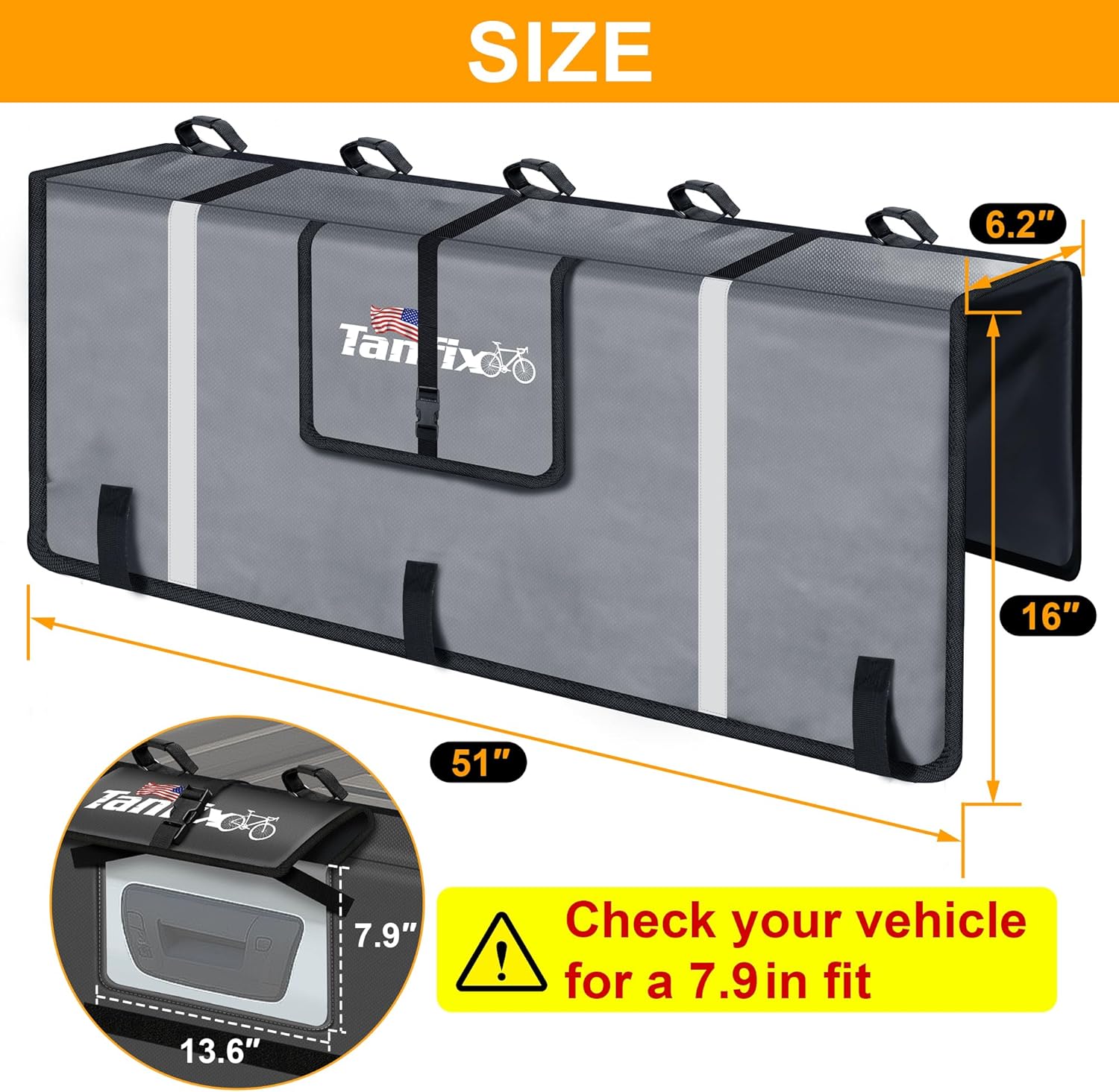 Protect your truck and haul bikes with confidence using this tailgate pad for mountain bikes. Made with durable 1680D PVC, soft inner lining, and 10mm foam padding, it helps reduce scratches and impact during transport. Designed for compact and mid-size pickup trucks, this truck tailgate bike pad holds up to 5 bikes and features secure bike straps, tool pockets, tailgate handle access, and convenient storage for trail days and everyday hauling.
