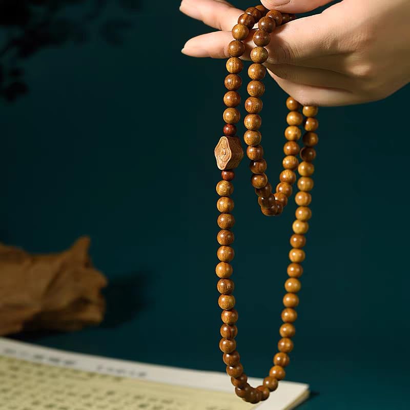 This accessory is exquisitely crafted from Sandalwood and Fabaceae materials, consisting of 87 big beads of 8mm and 4 small beads of 6mm, with an elegant overall design. Each piece is handmade by craftsmen with decades of experience. It not only adds a unique style to your outfit, becoming a striking matching item, but also emits a fresh and natural woody fragrance, allowing you to feel a comfortable atmosphere wherever you are. The package dimension of the product is 12*12*4 cm, which is convenient for storage and carrying.