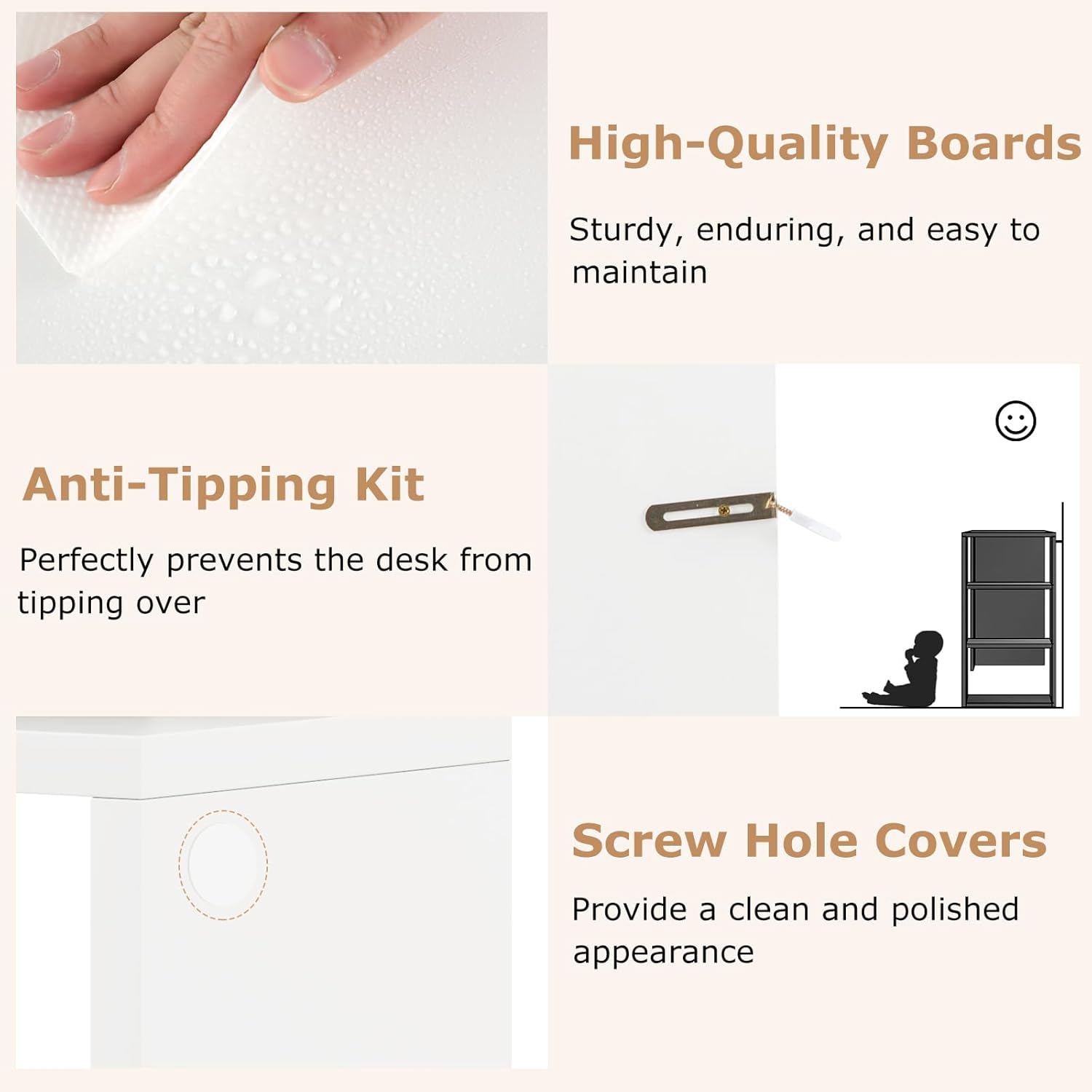 Description:With its wide desktop and 3-tier bookshelf, this sturdy computer desk offers ample storage space. In addition, the home office desk features a compact design for space efficiency. It includes an anti-tipping kit for safety and boasts a sleek modern design that complements any decoration. The study writing desk's craftsmanship details, such as screw hole covers, provide a sleek finish, while its smooth surface makes maintenance easy.Features:3-tier bookshelf offers ample storage for different essentialsHigh-quality boards are sturdy, enduring, and easy to maintainFeatures the anti-tipping kit that perfectly prevents the desk from tipping overProvide a clean and polished appearance, thanks to the screw hole coversMaximizes functionality without taking up too much roomSeamlessly fits into the study, living room, bedroom, and beyondPlease note that the computer desk requires assemblySpecifications:Color: WhiteMaterial: Engineered WoodOverall Dimensions: 36" x 16" x 29" (L x W x H)Size of Each Shelf: 14" x 6" (L x W)Shelf Spacing: 8", 9", 9"Net Weight: 29.5 lbsPackage Includes:1 x Computer Desk1 x User Guide
