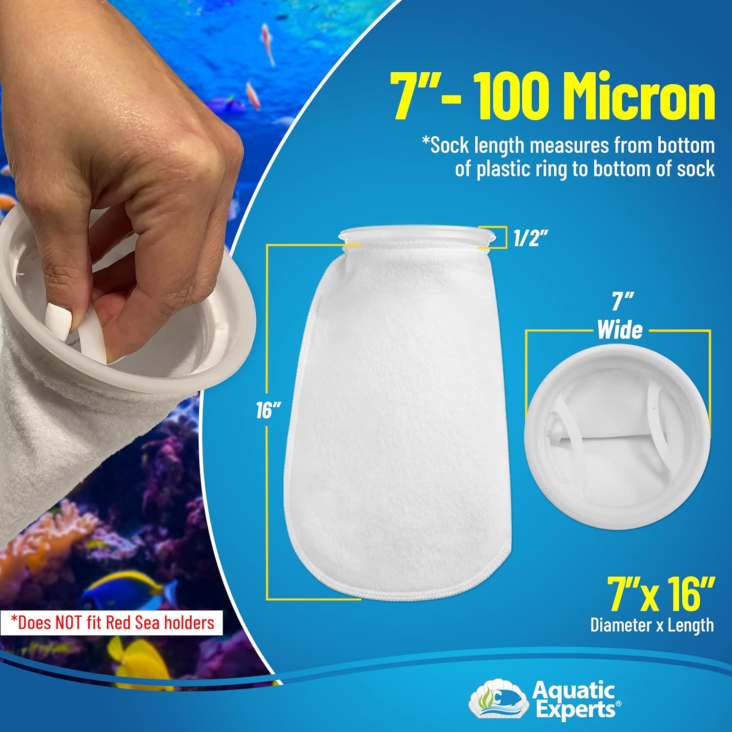 This bundle contains: TankFirst Aquarium Water Conditioner 500 mL and 2-pack, 7"x16" 100 Micron Felt Filter Socks