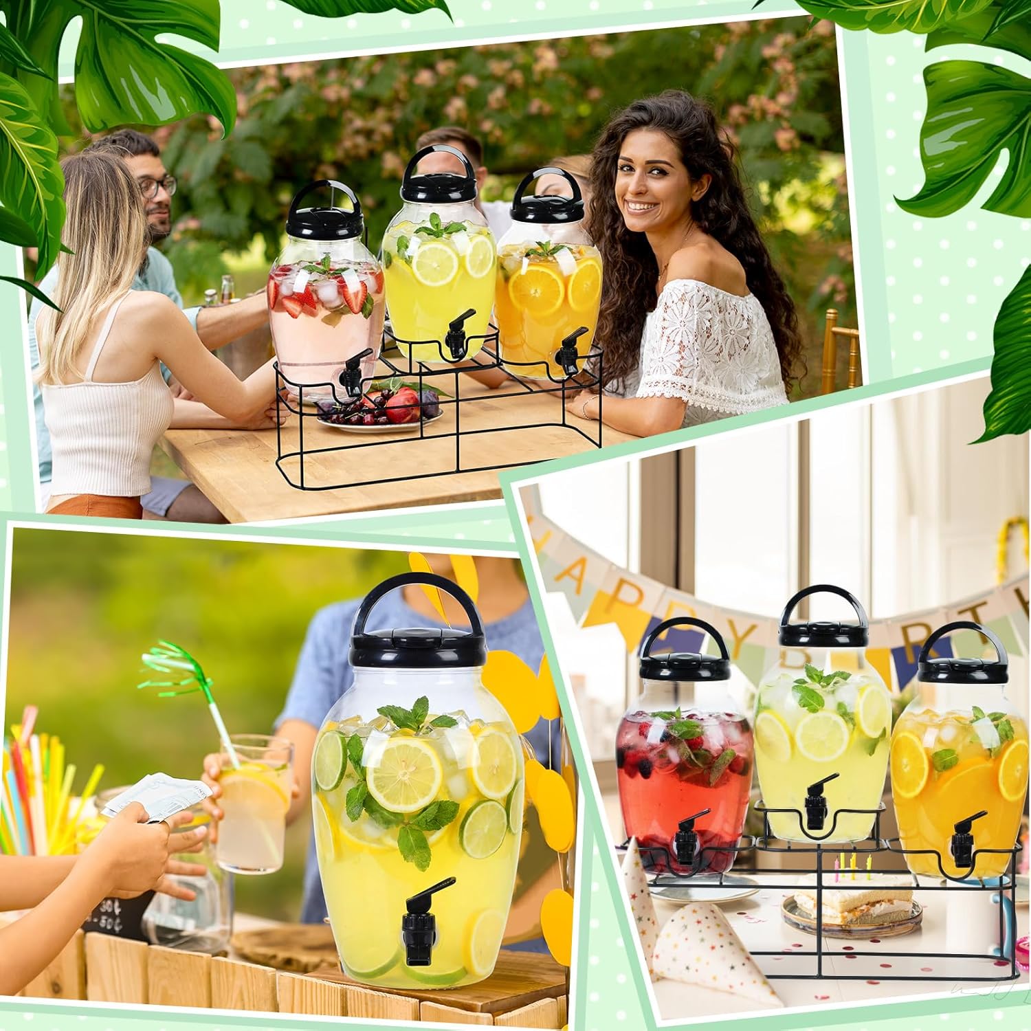 Features: Convenient party supplies: Our juice dispenser with stand are handy party supplies to have on hand, they make your event more organized, and they add a touch of elegance to your table. Suitable for homemade drinks: If you are favor of making homemade drinks, this set of iced beverage dispensers is ideal for showcasing them, your guests may appreciate the lovely presentation of your beverages, and you'll love how easy they are to serve. Specifications: Material: Drink dispenser: PET Stand: iron Color: transparent, white, black Size: about Drink dispenser: 7.01 x 10.94 x 5.12 inches/ 17.8 x 27.8 x 13 cm Metal stand: 19.69 x 6.61 x 6.3 inches/ 50 x 16.8 x 16 cm Package includes: 3 x Plastic drink dispensers 1 x Iron stand Notes: Manual measurement, please allow slight errors on size. The color may exist a slight difference due to different screen displays