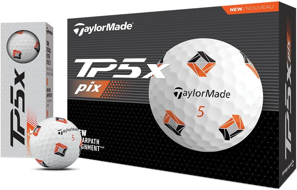 TaylorMade TP5x PIX 3.0 Golf BallsThe Most Complete Tour Ball. Tour Distance. Better Visibility.TaylorMade's Clearpath Alignment makes for clearer visible lines on the ball which gives you better putting feedback.Features:New Clearpath Alignment - Longer center line and additional color contrast are designed to give the golfer easier alignment and better feedback compared to prior designsNew Speed Wrapped Core - A new softer sound while promoting faster designNew 5 Layer Progressive Construction - Our largest speed gradient maximizes spin separation between driver/long irons and wedges