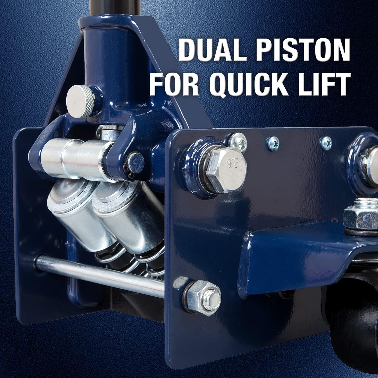 TCE's low-profile floor jack, with good load-bearing structure and high-density stainless steel material.Its features: low profile, high lifting range, and fast lifting function. Lifting range from 3-1/8" to 20". The dual piston pump lifts loads 5 times faster than a single pump and is ideal for most cars, trucks, and SUVs. Equipped with (2) large steel casters and (2) 360-degree swivel casters for smooth maneuverability. In terms of safety, this Torin service jack even comes with a built-in safety overload system which prevents use beyond load capacity. Wide stance provides added stability under load. It includes a 1 year limited manufacturer.