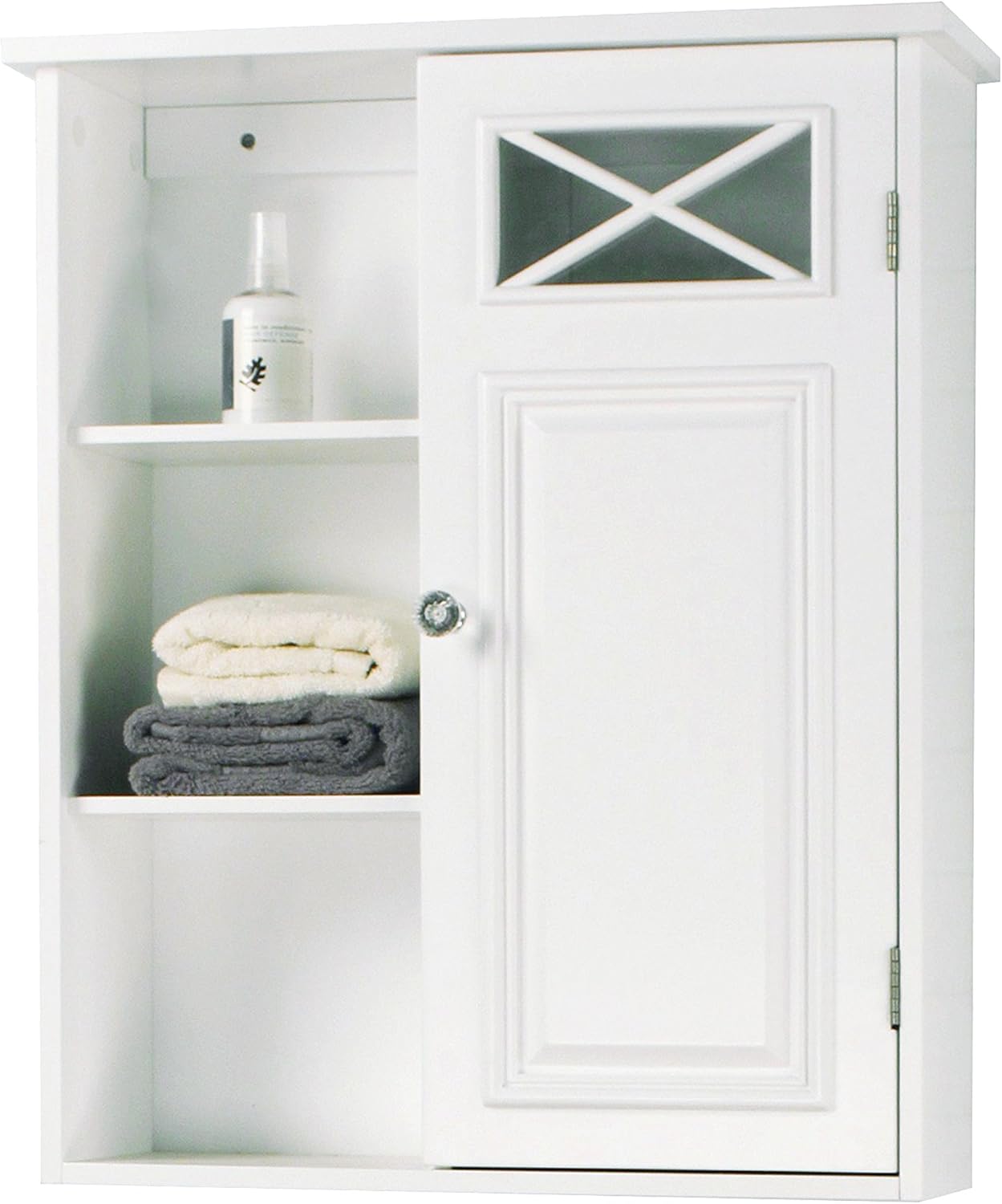 Upgrade your home storage while adding classic decor with the Teamson Home Dawson Wooden Wall Cabinet with Cross Molding. This decorative cabinet features a white finish with cross molding on the glass-paneled door and a clear knob for a beautiful addition to your space. The 2 included fixed open shelves and adjustable interior shelf help to reduce clutter and keep your home tidy. Constructed from durable engineered wood, this wall cabinet is built to provide you with long-lasting organization. Easy, step-by-step instructions and all of the hardware needed for installation are included for quick assembly. Purchase this stylish cabinet alone or with other items from the Dawson collection for a cohesive, updated look. The Teamson Home Dawson Wooden Wall Cabinet with Cross Molding measures 7" x 20" x 25" to provide accessible storage without taking up too much space in your living area or bathroom.