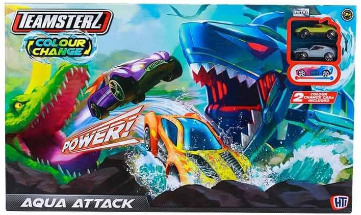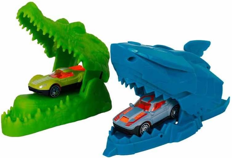 How about an adventurous race deep into the sea? If yes, get ready to play with a race thirsty crocodile and an action-hungry shark! Speed up on the slope, jump over the ramp into the water pool to get rid of the crocodile or shark! The colour of the car will change and is done, you are no longer recognized! Again, do it again and again! Enjoy the endless play fun with your friends and prove yourself in exciting races. Improve children's fine motor skills, hand-eye coordination, focus and cause-and-effect relationships. Let them play with friends and get socialised. The box includes 2 colour-changing vehicles, a race track with launcher with a crocodile and a shark. The cars contained in the set may vary in colour and design. Box size: 51 x 9 x 30 cm Weight: 0.771 kg